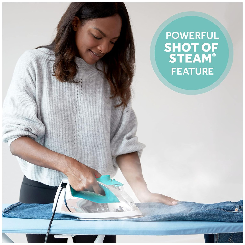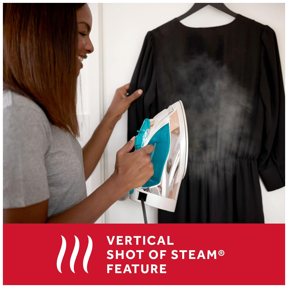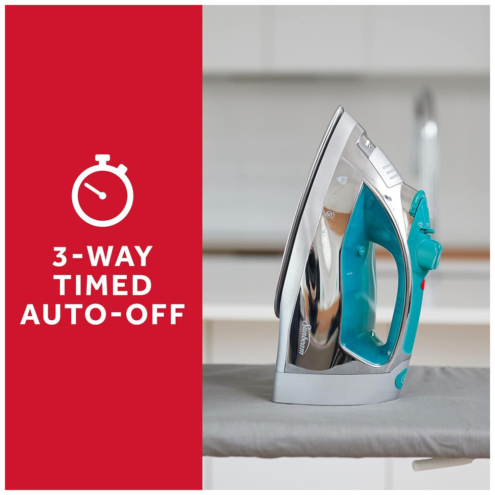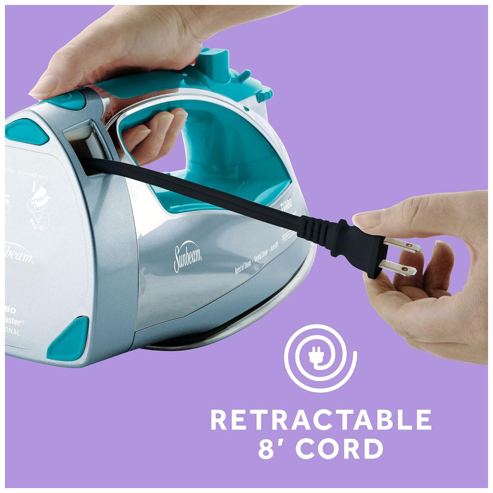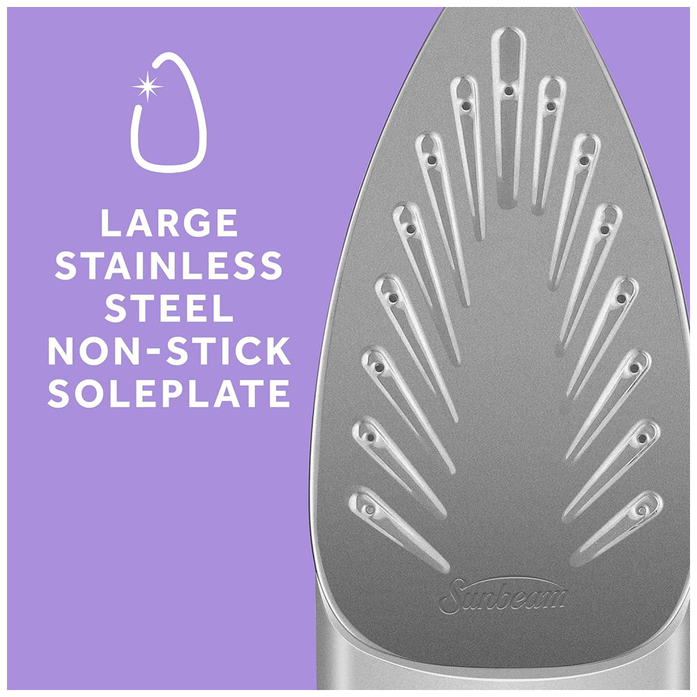 FUNCIONALIDADE SEM FIO O ferro a vapor híbrido com fio , sem fio atualizado da Sunbeam de 1400 watts fornece até 60 segundos de calor e vapor contínuos no modo sem fio e reaquece rapidamente em apenas 25 segundos quando colocado de volta em sua base