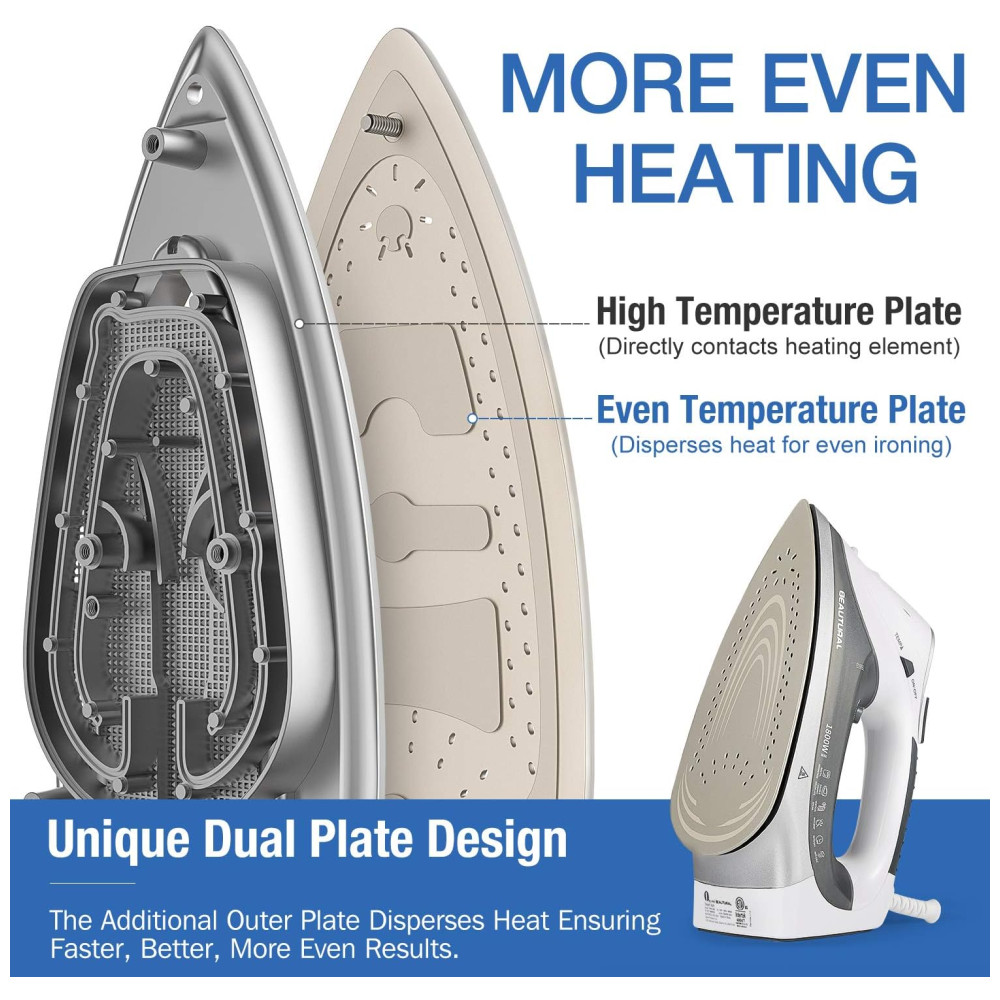 Base dupla de cerâmica mais dura do que o aço inoxidável, super resistente a riscos e mais durável e fácil de limpar Proteja suas roupas delicadas com um design de camada dupla exclusivo que garante aquecimento uniforme de toda a base