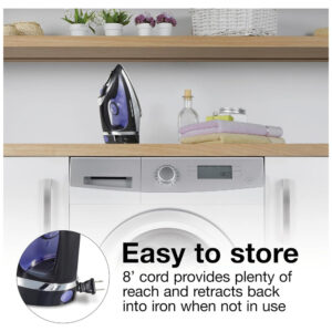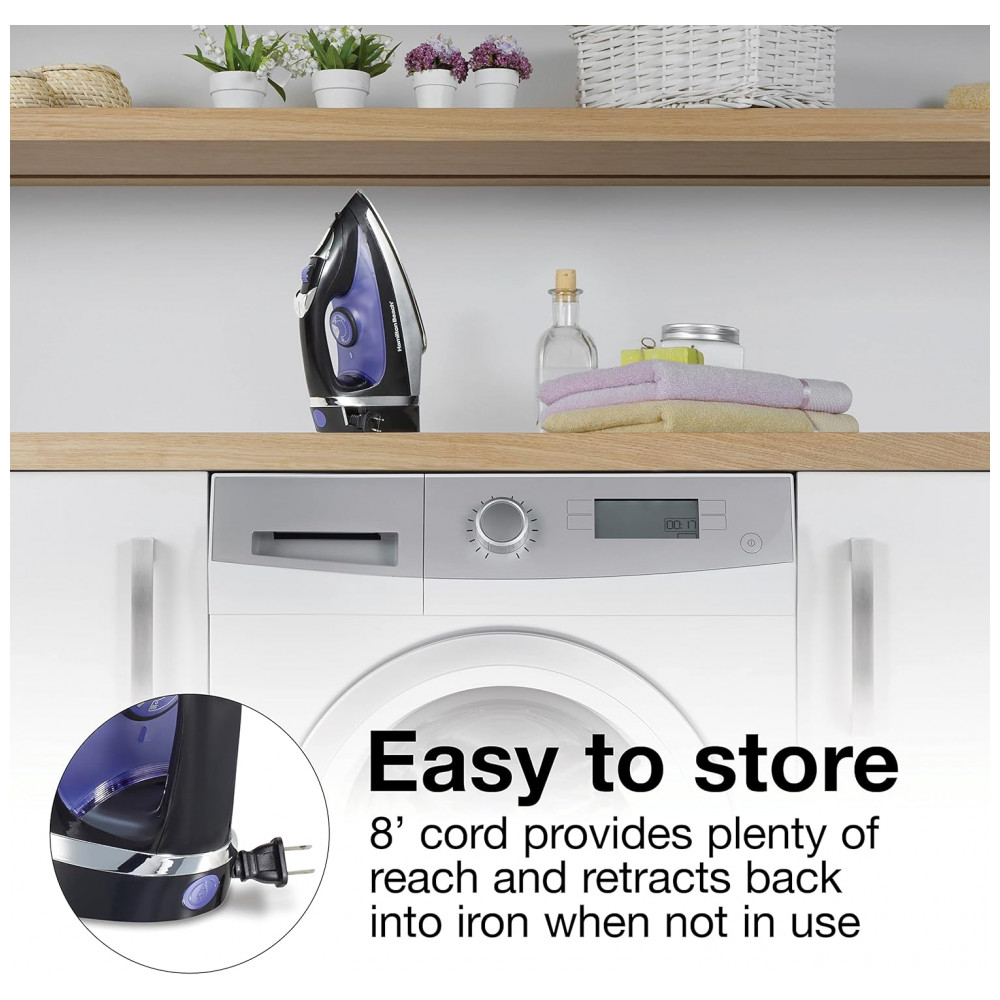 O Ferro de Passar a Vapor da Hamilton Beach com Cabo Retrátil torna fácil a tarefa de remover rugas de todos os tipos de tecido. Sua base de aço inoxidável durável proporciona um deslize suave, e o cabo retrátil de 2,4 metros facilita o armazenamento. De camisas de algodão a calças de denim, a base de aço inoxidável desliza suavemente sobre todos os tipos de tecido. Aquece rapidamente e de forma uniforme, permitindo a remoção de rugas dos tecidos mais espessos aos mais delicados. Com opções versáteis de vapor, botão de spray de água e função de vapor vertical, proporciona total controle do vapor para resultados impecáveis.