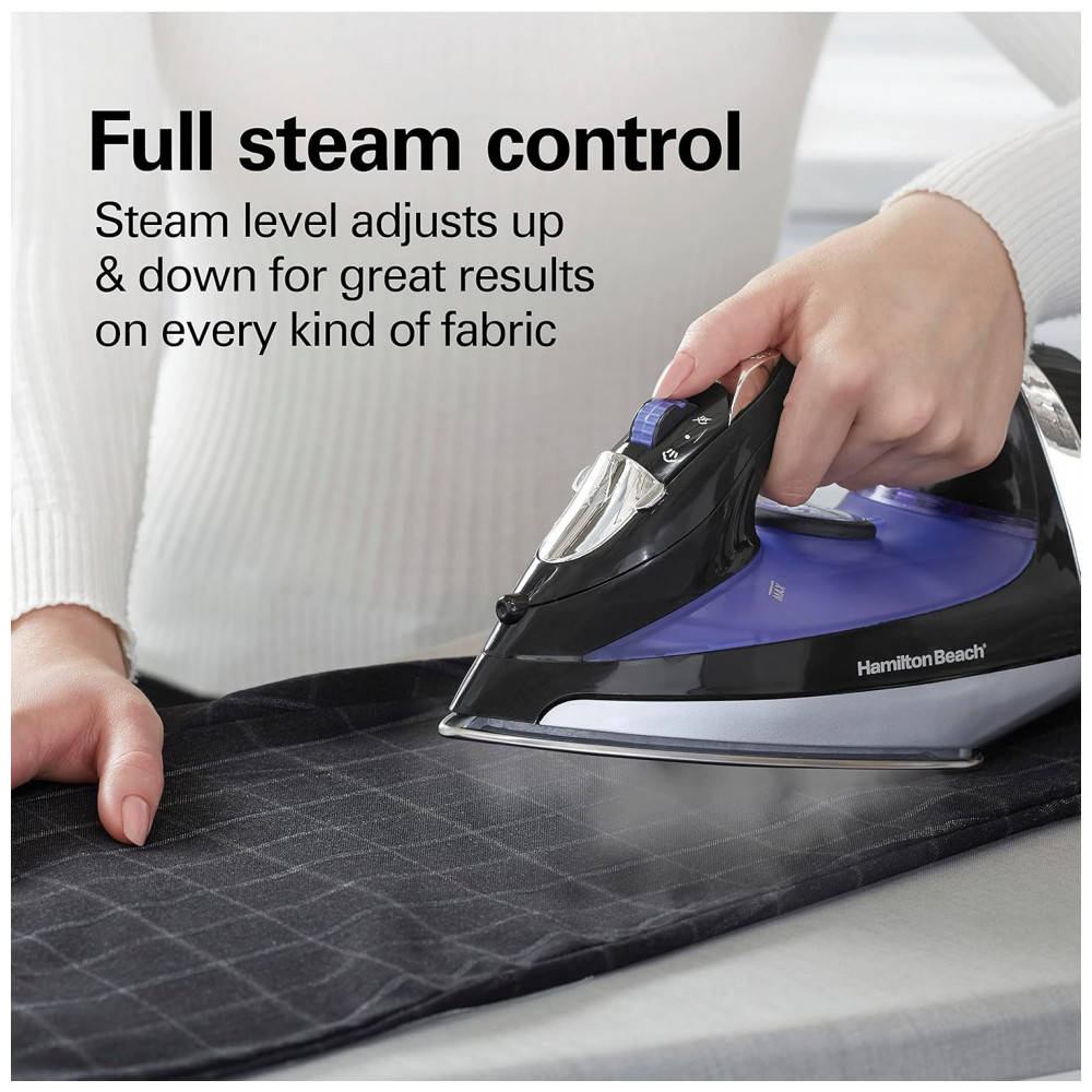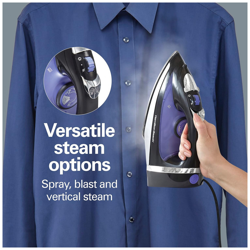 Ferro de Passar a Vapor Hamilton Beach com Base de Aço Inoxidável 1200 Watts e Cabo Retrátil de 24 metros Preto