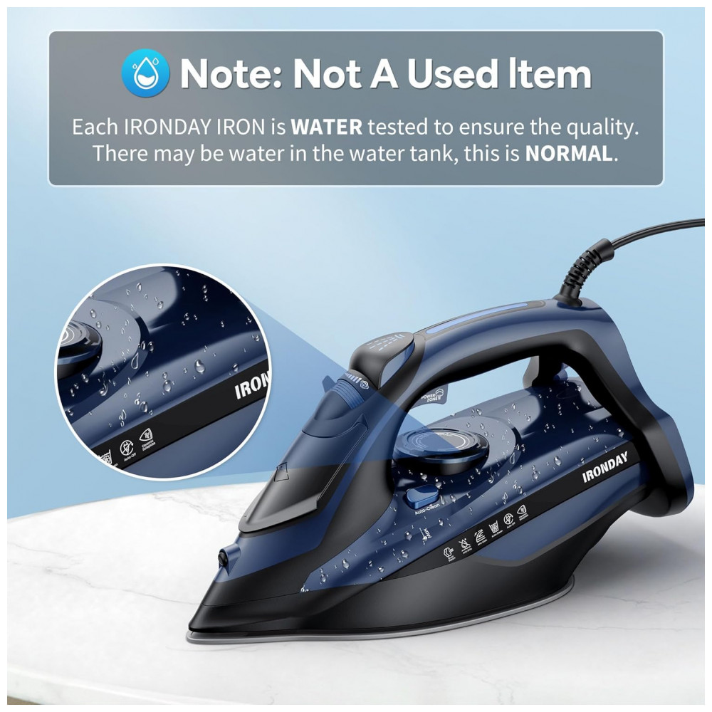 Cada ferro a vapor Ironday é TESTADO COM ÁGUA antes de sair da fábrica, garantindo qualidade e segurança. Aquecimento rápido em 20 segundos! Com 1700W de potência, distribui calor de forma homogênea, esquentando rapidamente. O reservatório de água de 450ml garante longo tempo de vapor contínuo. Com discagem de termostato ajustável em 3 configurações, adequadas para diferentes tecidos. Possui desligamento automático em 3 posições para segurança. O jato de vapor potente, pulverizador de água e função de vapor ajustável garantem roupas sem rugas. Marca Ironday, modelo SL-801.