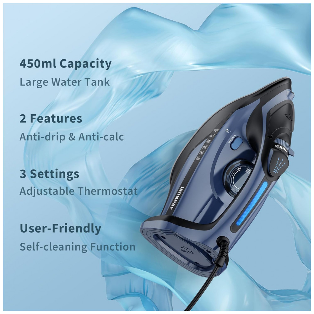 Característica Especial: Desligamento Automático, Pulverizador de Água & Jato de Vapor, Reservatório de Água de 450ml/15.21oz, Anticalcário & Antigotejamento, Base Revestida de Cerâmica, Discagem de Termostato Ajustável, Vapor Ajustável, Autolimpeza. Veja mais,