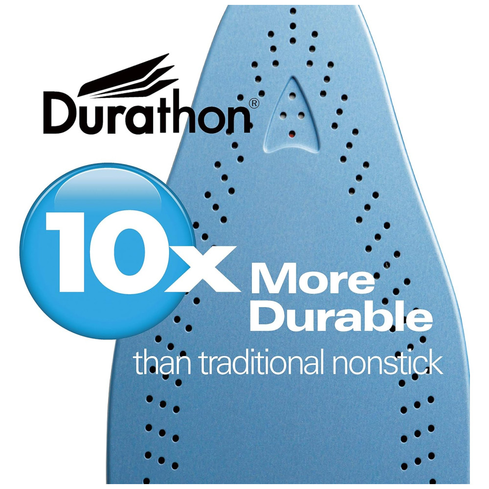 10x mais durável do que o antiaderente tradicional a base antiaderente de duração desliza suavemente sobre a roupa.