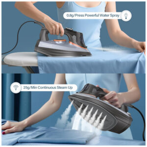 Cada ferro a vapor IRONDAY passa por rigorosos testes de qualidade com água antes de sair da fábrica, garantindo a qualidade e segurança do produto. A tela LCD amigável ao usuário oferece 4 configurações pré-definidas para passar roupas de forma precisa. Com desligamento automático em 3 posições, reservatório de água generoso de 290ml, opções de vapor horizontal e vertical, jato de vapor potente, névoa de spray suave, este ferro é ideal para lidar com grandes volumes de roupa com eficiência.