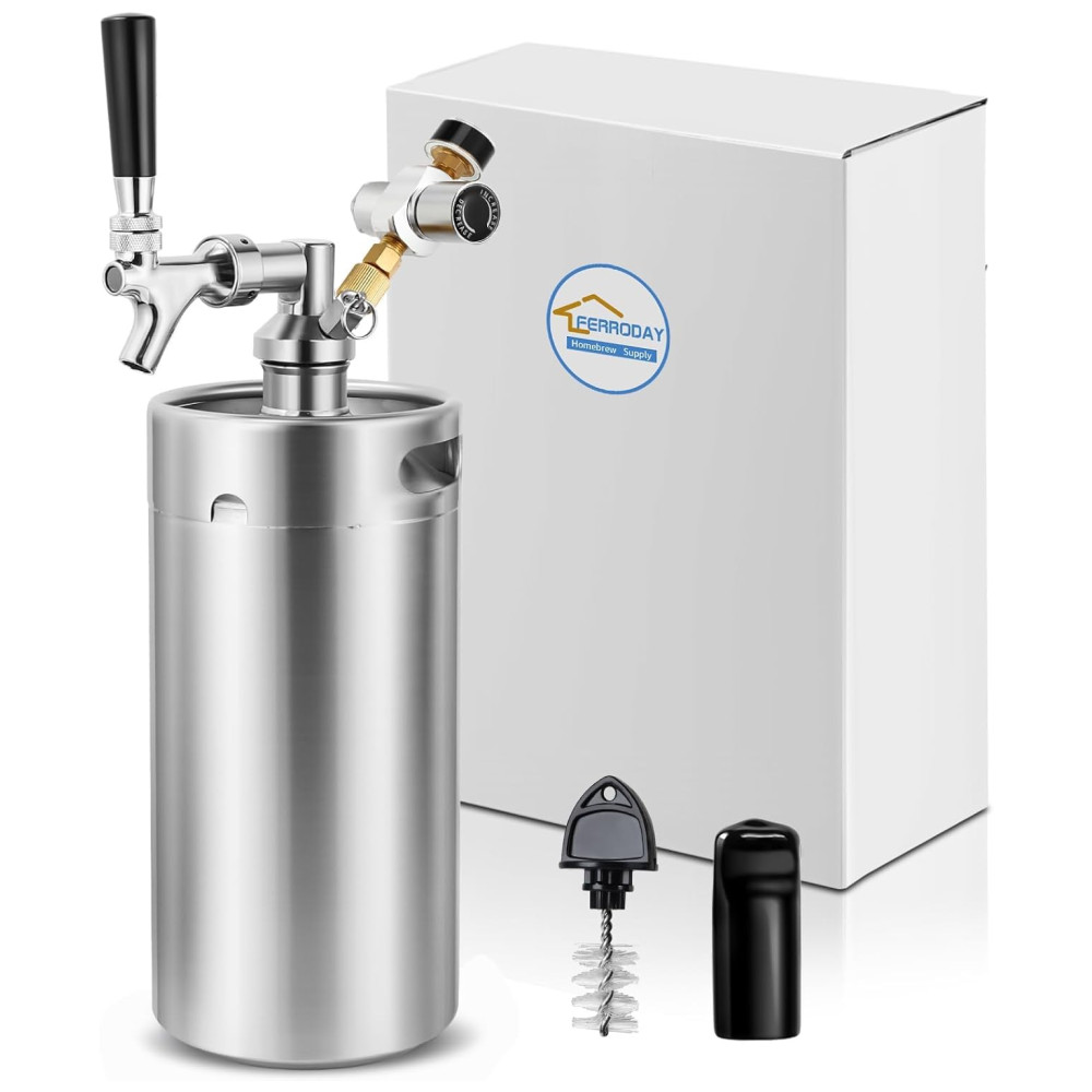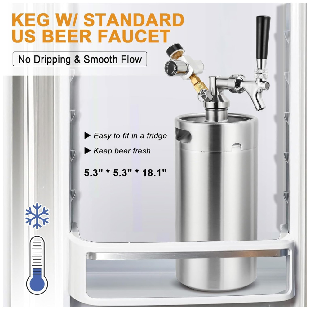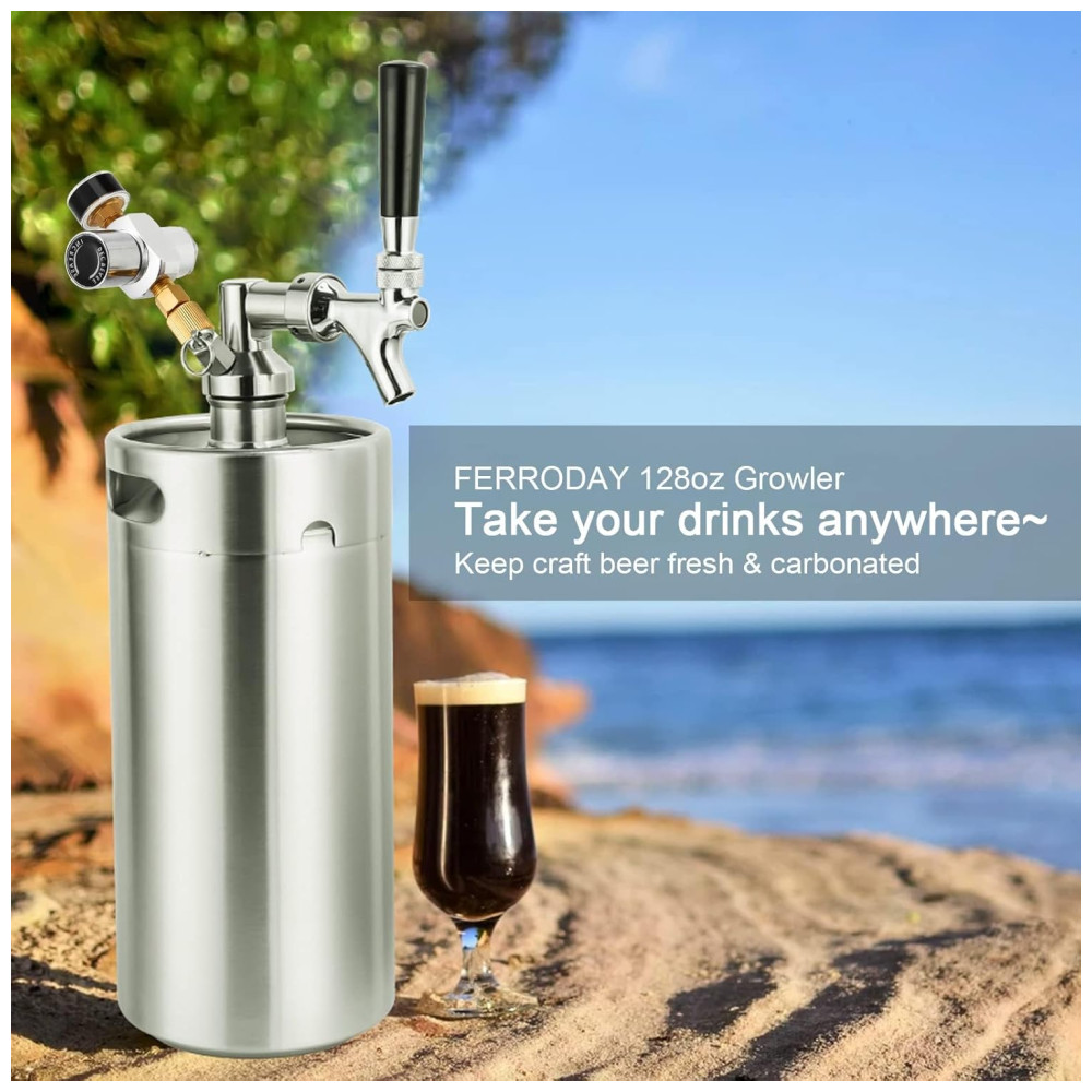 FERRODAY Chopeira Portátil 3.7L com Torneira e Regulador de CO2 Aço Inoxidável Prata