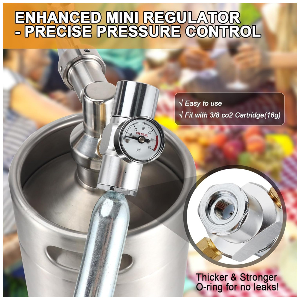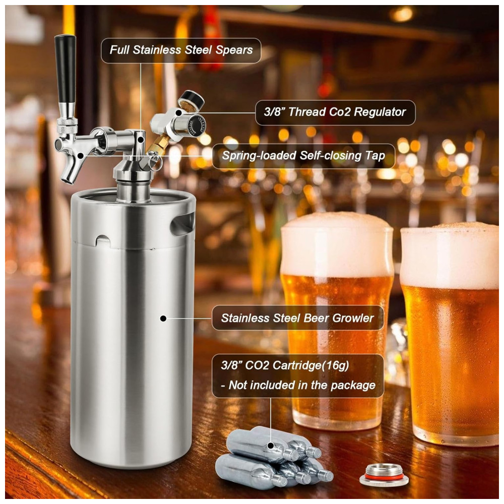 Funciona com cartucho de CO2 descartável O cartucho de co2 de 16g é perfeito para dispensação de barris de 3.7L o cartucho não está incluído, mantenha seu sistema de barris pressurizado para manter a carbonatação. Chega de cerveja plana com a torneira FERRODAY mini tanque growler sistema Por favor, sinta se livre para dizer se houver algum problema, vamos tentar o nosso melhor para ajudar