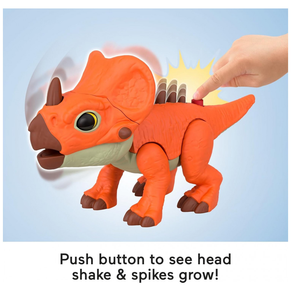 Os jovens fãs podem trazer para casa os dinossauros vistos em Jurassic World Renascimento com essas figuras de ação Imaginext da Fisher-Price. É fácil recriar a ação vista na tela ou deixar a imaginação fluir com seu tamanho fácil de segurar e ação acionada pela criança – basta pressionar o botão com os dedos pequenos para ver o dinossauro recriar uma ação de batalha, enquanto aprimora as habilidades motoras finas. Algumas figuras têm elementos de toque realista para adicionar um momento tátil divertido e mais inspiração para contar histórias. Os amantes de dinossauros podem escolher seu favorito inspirado no filme ou podem colecionar todos para reviver momentos épicos do filme e imaginar novas histórias. Cada um vendido separadamente, sujeito à disponibilidade. Cores e decorações podem variar. Inspirados em Jurassic World Renascimento, os brinquedos de dinossauro Imaginext da Fisher-Price estão prontos para saltar da tela e invadir os lares dos fãs. Cada dinossauro é projetado com um movimento único para um jogo envolvente – as crianças simplesmente pressionam o botão neste Aquilops para vê-lo investir com a cabeça e crescer espinhos para adicionar diversão tátil e incentivar a exploração independente, enquanto a ação ajuda a aprimorar as habilidades motoras finas. Os fãs dos filmes podem recriar cenas da tela ou contar novas histórias épicas com a criatura incrivelmente fofa de 19,69 centímetros. Destacando espécies favoritas, esses brinquedos de Jurassic World incentivam o jogo imaginativo em crianças em idade pré-escolar a partir de 3 anos.
