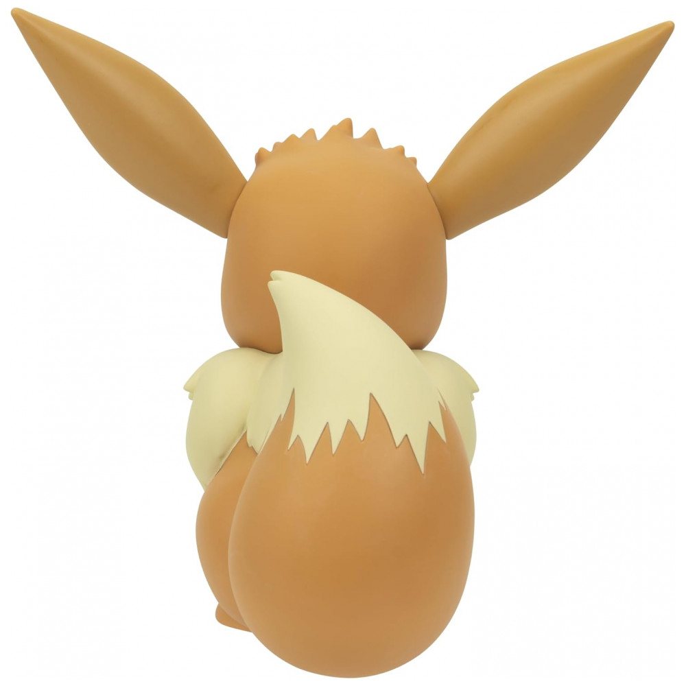 A peça é produzida em vinil rígido com acabamento liso e pintura em múltiplas cores, reproduzindo os elementos característicos do personagem, como pelagem marrom, gola clara, orelhas grandes e cauda volumosa. O produto é indicado para maiores de 3–4 anos e integra a linha de figuras Select de 8 polegadas, voltada principalmente a colecionadores e fãs de Pokémon.
