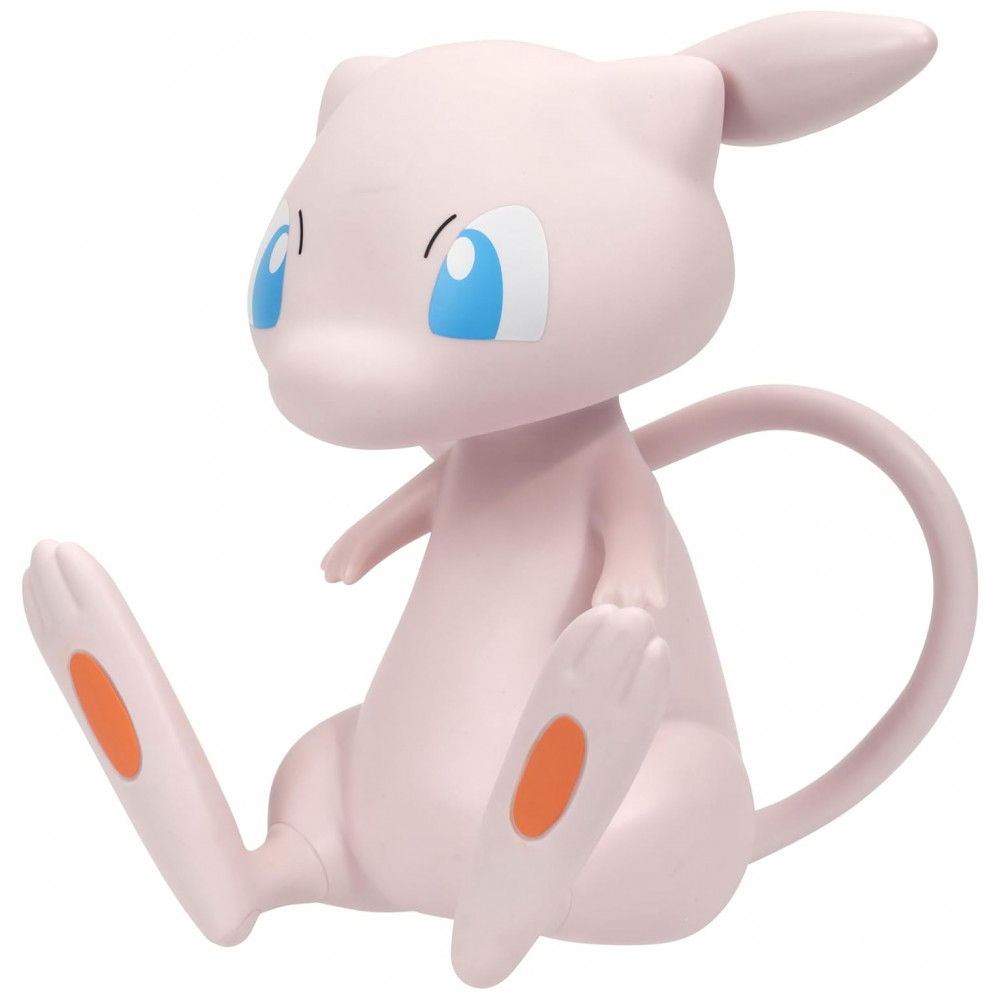 A figura Pokémon Mew Select Jazwares é uma peça colecionável em vinil com aproximadamente 10 cm de altura, indicada para exposição em prateleiras, mesas ou vitrines. O modelo representa o Pokémon Mew em posição estática, com corpo inteiro esculpido e formato estável para apoio em superfícies planas, voltado ao uso decorativo.