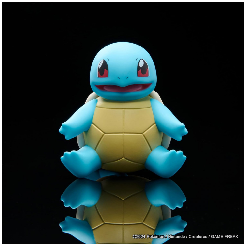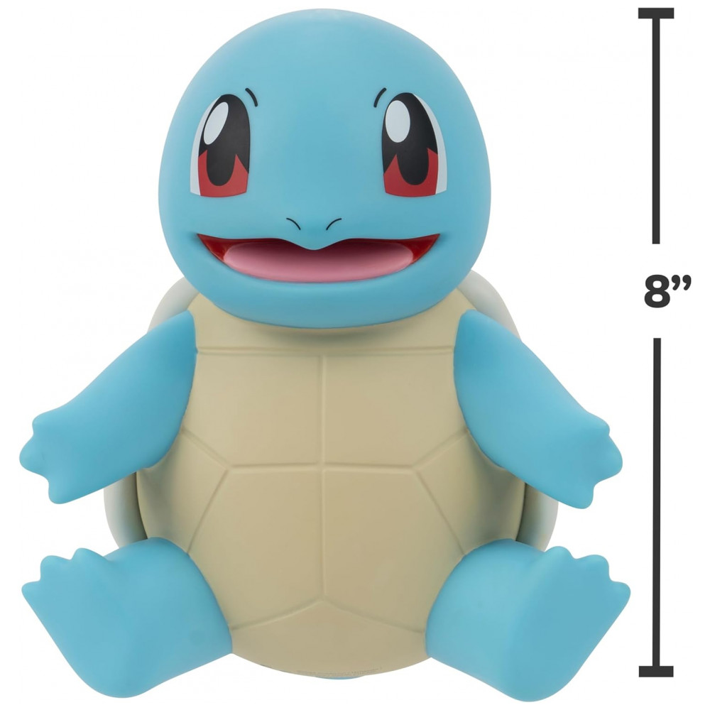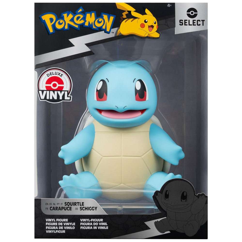 A figura Pokémon Squirtle Select Vinyl da Jazwares é uma estátua colecionável em vinil, com aproximadamente 20 cm de altura, que representa o Pokémon Squirtle em pose inspirada na série animada. O modelo destaca o formato de tartaruga com casco marrom, cauda curvada e expressão fiel ao personagem, com pintura em tons de azul, bege e branco.