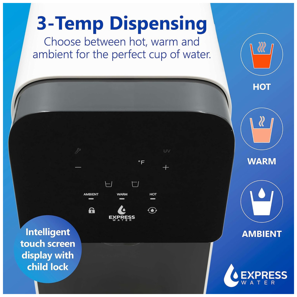 Nosso sistema de osmose reversa de bancada é a escolha ideal para quem busca uma experiência de bebida personalizada. Com controle inteligente de temperatura, você pode escolher entre temperatura quente, morna, ambiente ou manual, além de poder selecionar entre dois tamanhos de xícara ou modo manual. Utilizando tecnologia de purificação RO UV avançada, nosso filtro reduz até 99,99 de impurezas e utiliza um conjunto completo de filtros twistandseal de troca rápida, o que significa que não é necessária instalação.