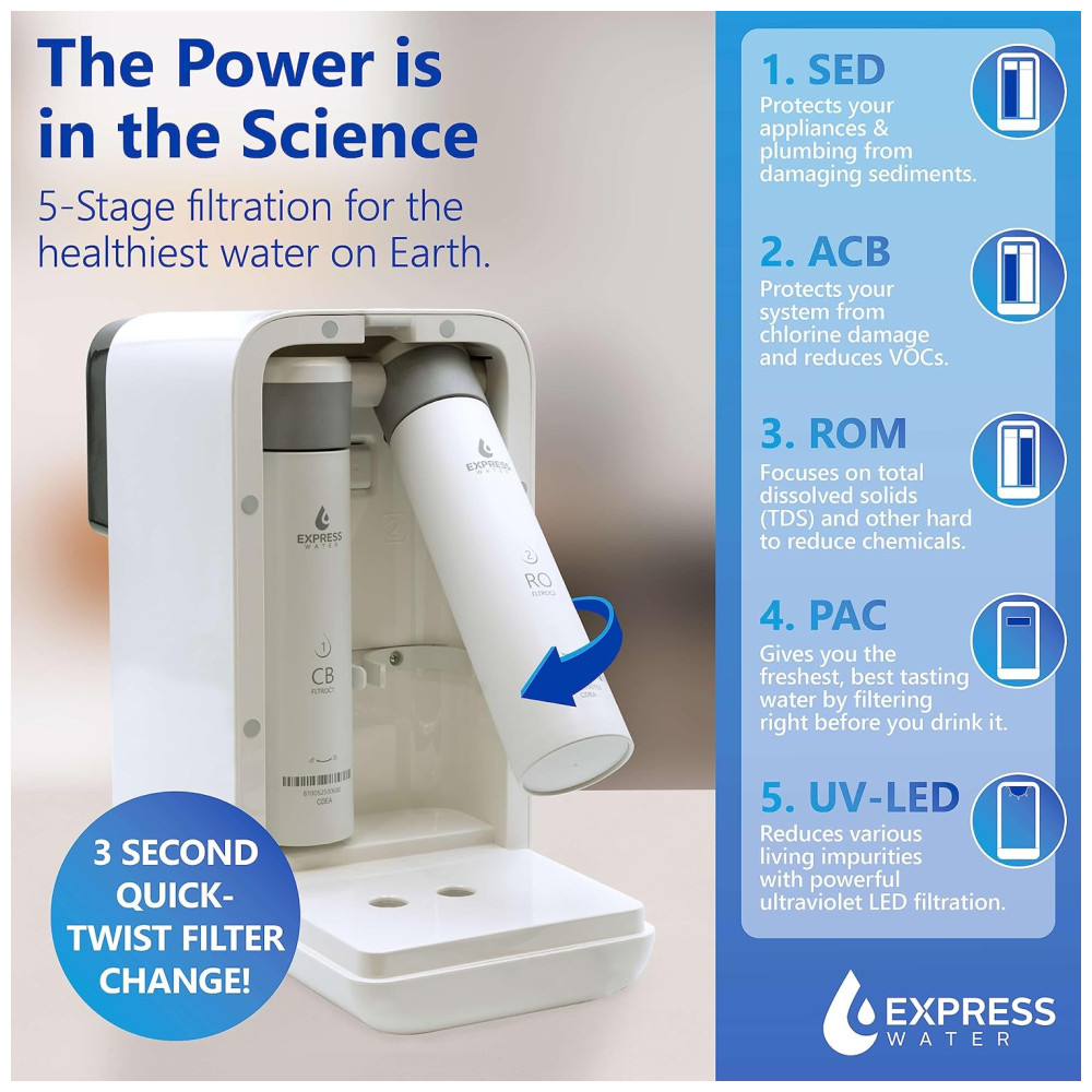 Os filtros CB e PAC duram 6 meses, e a membrana RO até 24 meses, proporcionando filtração duradoura. Perfeito para locatários, casa, cozinha, escritório, trailers e muito mais.
