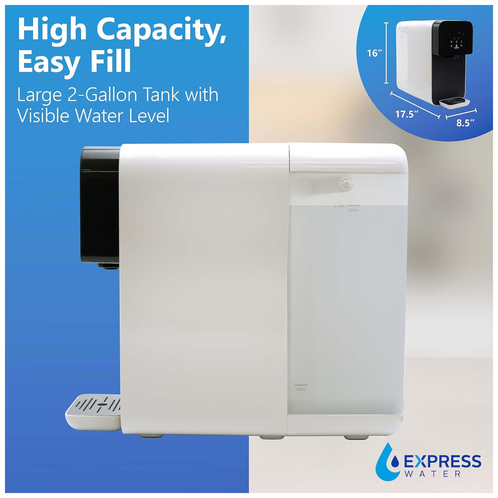 Com um generoso tanque de 9,03 gramas de 7,58 litros, nosso filtro de água de osmose reversa de bancada requer manutenção mínima, reduzindo a necessidade de recargas frequentes. Além disso, utilizando nosso sistema de filtragem de água de bancada, você pode obter economias de custos significativas e contribuir ativamente para a redução de resíduos plásticos.