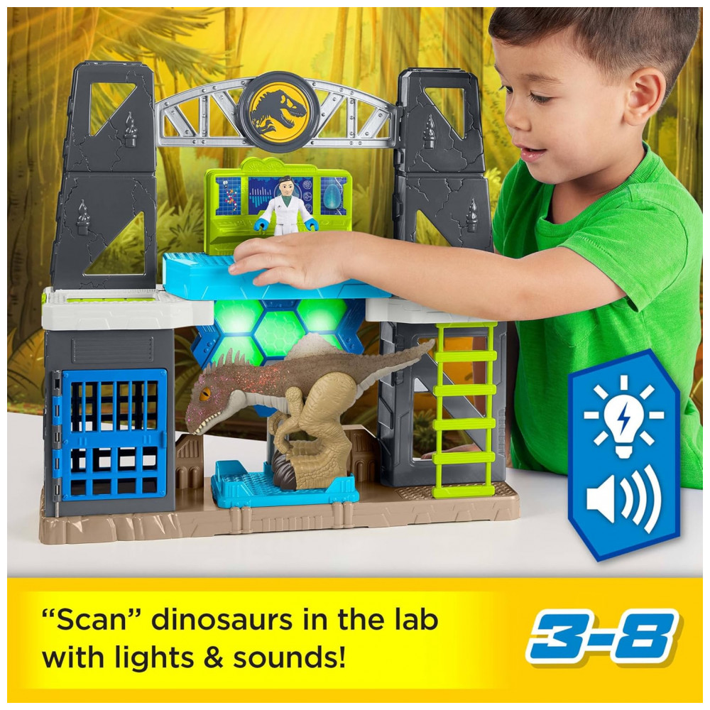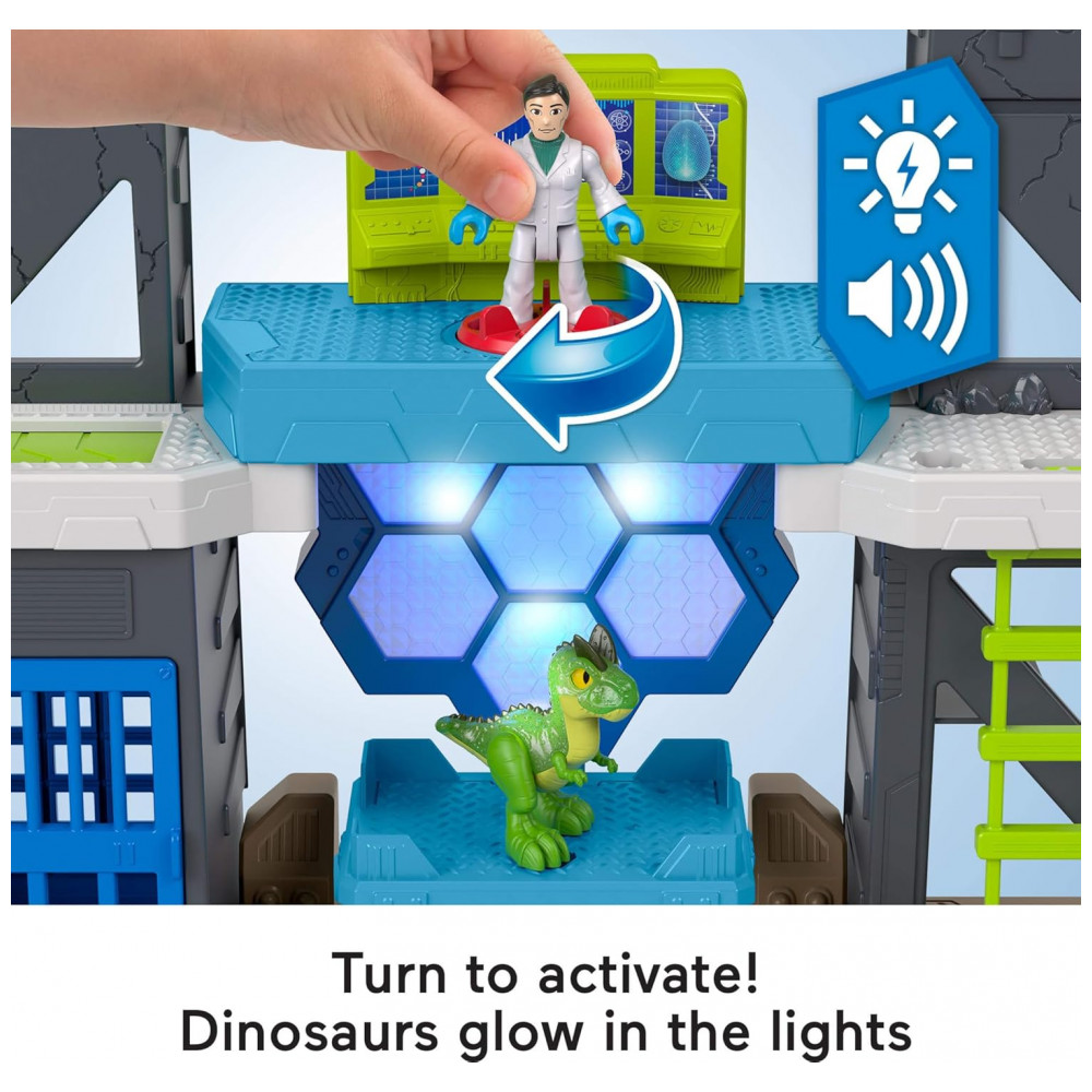 Fisher-Price Imaginext Jurassic World Scan & Glow Dino Playset laboratório com dinossauros luminosos luzes e sons 6 peças