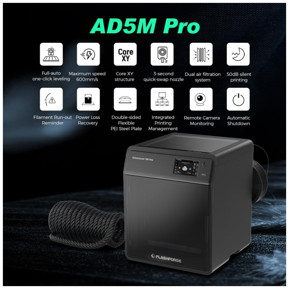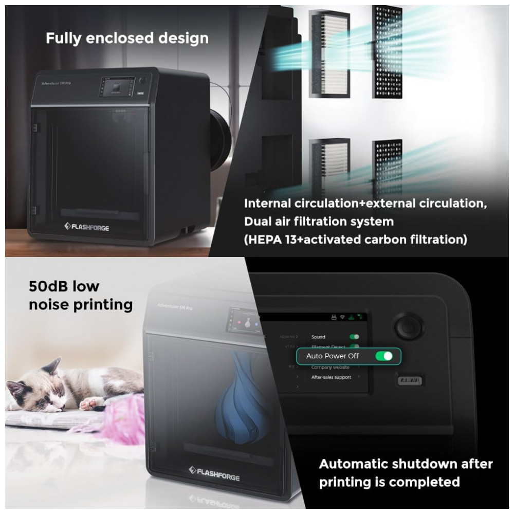 Alcance o sucesso com a Impressora 3D FLASHFORGE Adventurer 5M Pro! Com nivelamento automático em um clique, obtendo a camada inicial perfeita em cada impressão. Elimine espera com compensação de vibração, garantindo impressões sem fantasmas. Aquecimento rápido, bico de 32mm/s, extrusão precisa e consistente para resultados de alta qualidade. Monitore remotamente com câmera embutida, desligamento automático e impressão silenciosa a 50dB. Desfrute de rapidez, qualidade excepcional e impressões nítidas. Sistema de filtragem dupla para ambientes fechados, bloqueando 99% de partículas e VOCs. Ideal para uso em salas de estudo e salas de aula.