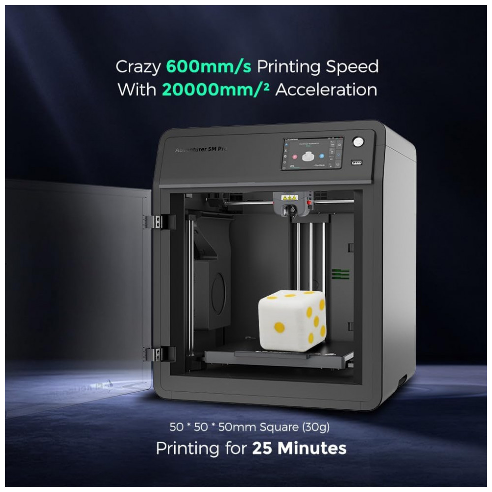 FLASHFORGE Adventurer 5M Pro – Impressora 3D de Alta Velocidade de 600mm/s com Sistema de Impressão Totalmente Automático com 1 Clique