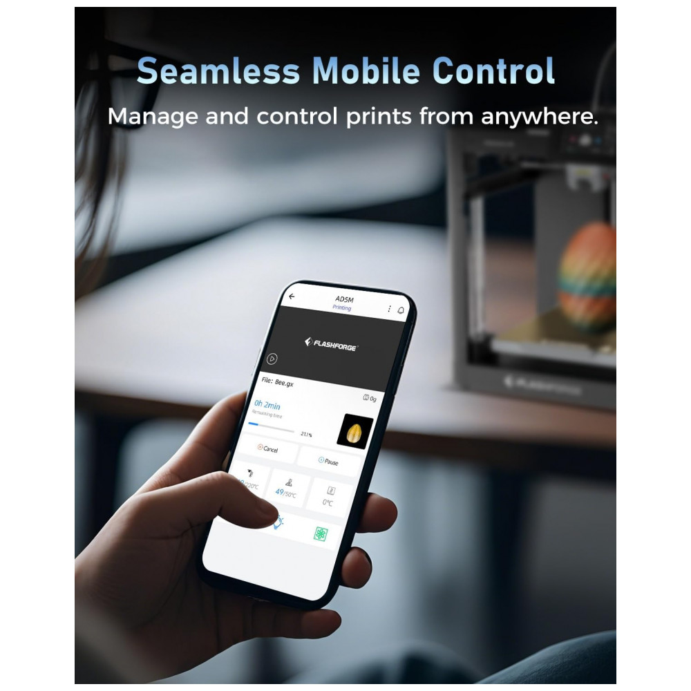 A Impressora 3D FLASHFORGE AD5M oferece uma impressão CoreXY ultrarrápida de 600mm/s, garantindo uma estrutura CoreXY com aceleração de 20.000mm/s². Perfeita para prototipagem rápida, iterações velozes e produção em alta escala. O Auto Nivelamento em 1 Clique garante a calibração automática da mesa, proporcionando uma altura ideal do bico em toda a plataforma, resultando em adesão consistente da primeira camada e impressões confiáveis. Com extrusão de precisão e sistema de resfriamento duplo, a extrusora de direção direta de alta temperatura atinge até 280ºC, com bicos de troca rápida em 3 segundos e ventoinhas de canal duplo para detalhes limpos. Suporta múltiplos tamanhos de bico 0.25 a 0.8mm para equilibrar velocidade e precisão sem comprometer a qualidade. Controle inteligente para impressões contínuas, monitorize e ajuste os parâmetros em tempo real via aplicativo Flash Maker. Desfrute de fluxos de trabalho suaves com recuperação de energia, detecção de falta de filamento e salto de objetos para trabalhos multipartes. Material versátil de código aberto, totalmente customizável para atualizações de firmware e hardware. Opção de invólucro garante controle de temperatura estável para materiais de alto desempenho, ideal para makers, engenheiros, educadores e fazendas de impressão.