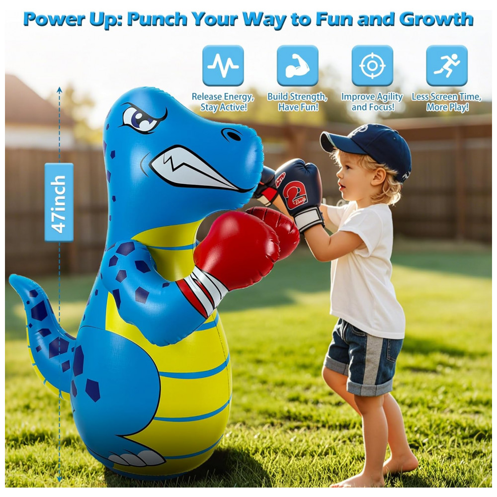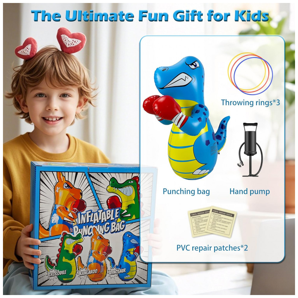 Diversão e Atividade Física para Crianças! Este boneco inflável de dinossauro da FloVogue, com 120 cm de altura, é o brinquedo ativo ideal para crianças de 3 a 8 anos. Perfeito para queimar energia, ele auxilia no desenvolvimento da força, coordenação e condicionamento físico geral através de uma brincadeira interativa e envolvente. Adequado para uso interno e externo! Dois Modos de Brincadeira Empolgantes: As crianças podem aproveitar duas atividades estimulantes — boxe e jogo de arremesso. Seja praticando boxe para melhorar a forma física ou jogando argolas, este boneco inflável mantém as crianças entretidas enquanto fortalece os músculos, aumenta o foco e melhora a agilidade. Material Seguro e Durável: Fabricado em vinil grosso e de alta qualidade, este boneco inflável é resistente para suportar brincadeiras enérgicas. O material é seguro para crianças, não tóxico, garantindo a segurança dos pequenos enquanto proporciona horas de entretenimento ativo. Design à Prova de Vazamentos e Rasgos: Construído para suportar impactos fortes, este boneco conta com estrutura resistente a vazamentos e rasgos, ideal para crianças ativas que adoram brincar ao ar livre ou até mesmo na piscina. Presente Perfeito para Crianças: Procurando o presente ideal para aniversários, Natal ou outras ocasiões especiais? Este boneco inflável de dinossauro é um brinquedo interativo e emocionante que vai encantar qualquer criança, estimulando a atividade física e proporcionando diversão sem fim.