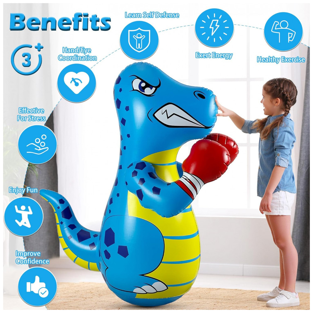 FloVogue Boneco Inflável de Dinossauro para Crianças com Bomba de Ar – 120 cm Atividades de Boxe e Jogo de Arremesso