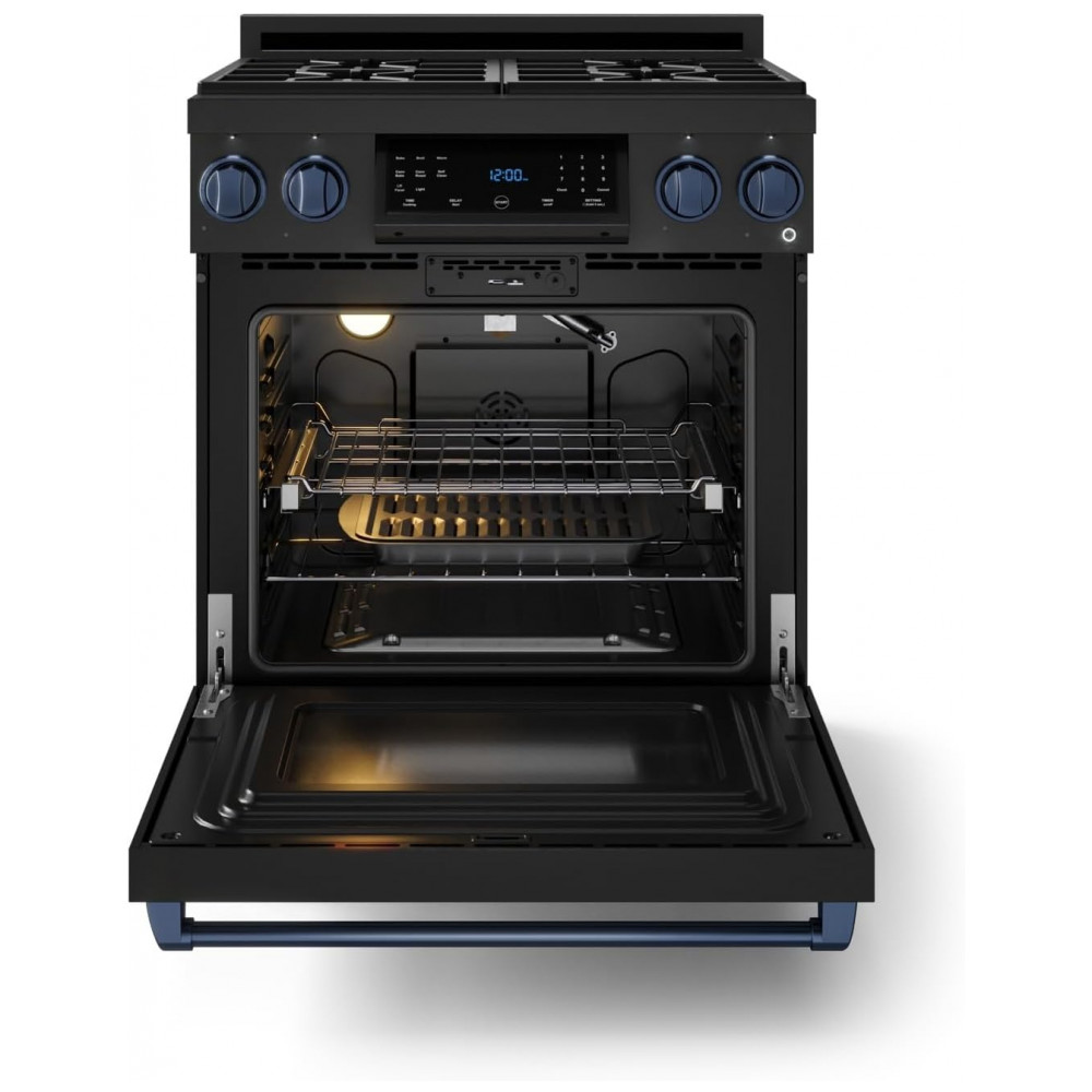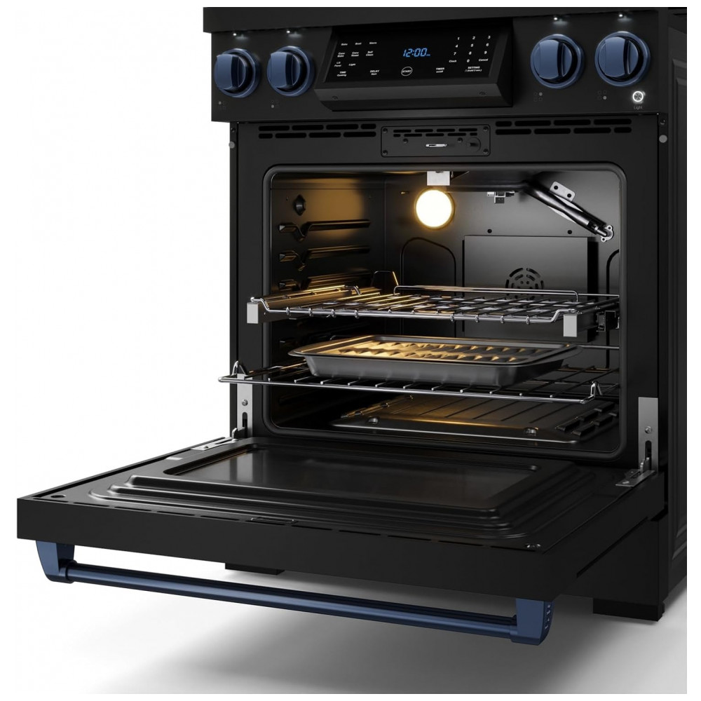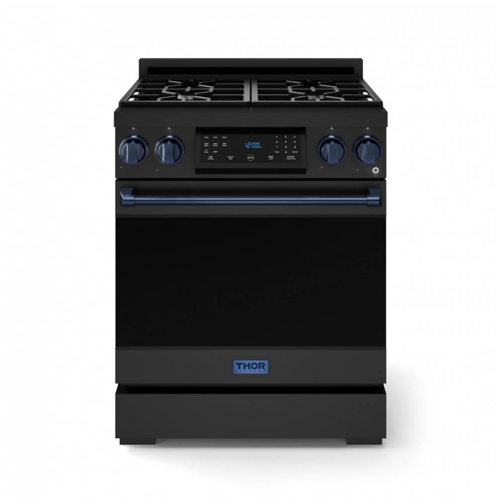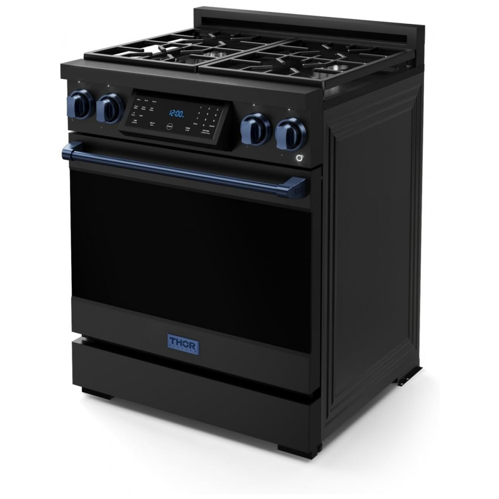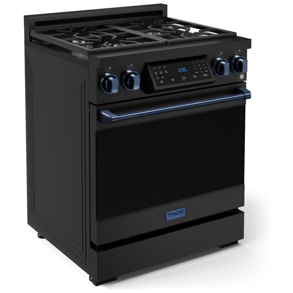Fogão a gás GLP profissional 76cm Thor Kitchen Gordon Ramsay preto/azul marinho painel touch basculante convecção grelha contínua 129L 110V
