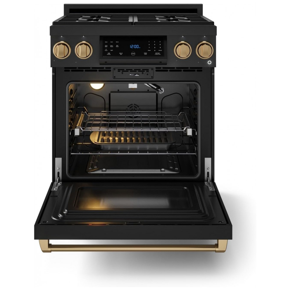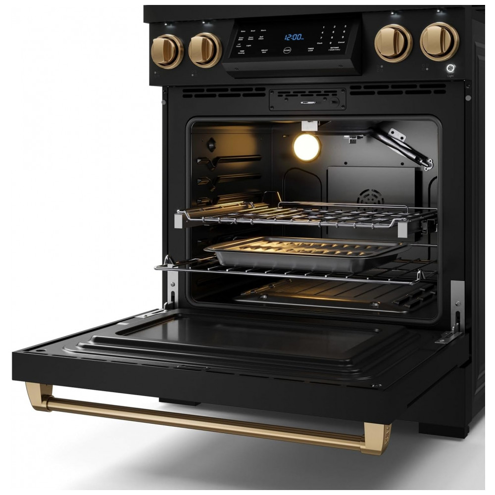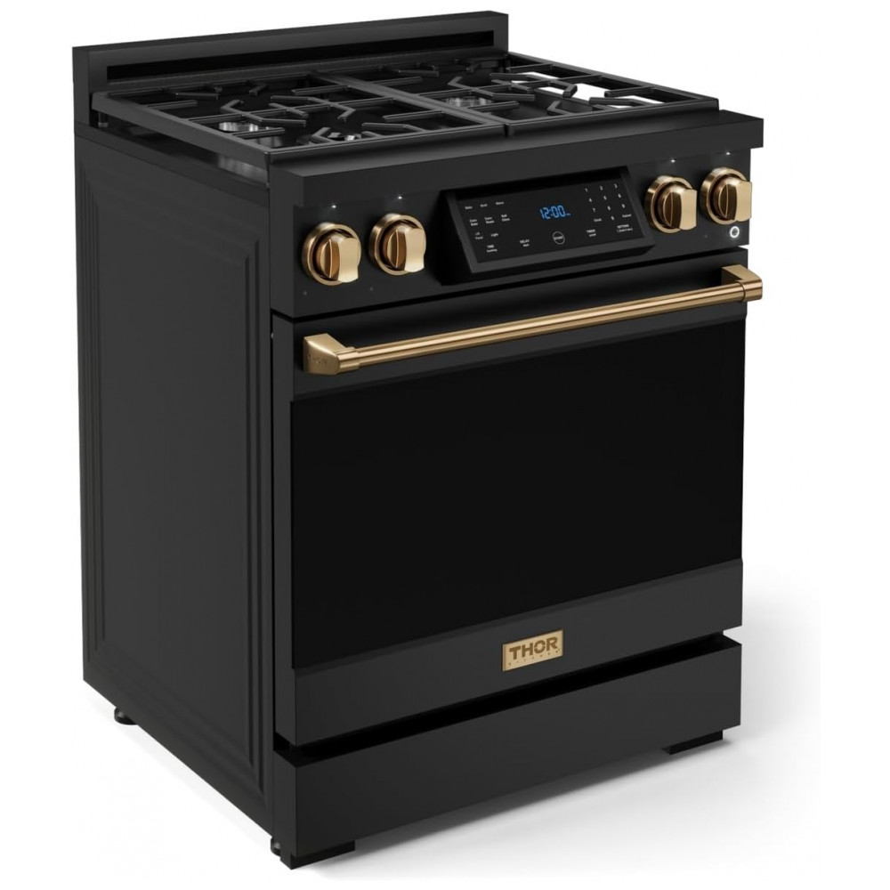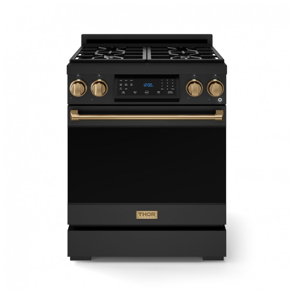 Fogão a gás GLP profissional 76cm Thor Kitchen Gordon Ramsay preto/bronze painel touch basculante convecção grelha contínua 129L 110V