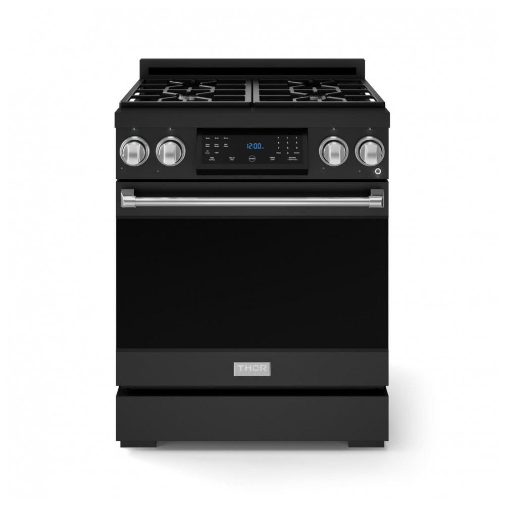 Fogão a gás GLP profissional 76cm Thor Kitchen Gordon Ramsay preto/inox painel touch basculante convecção grelha contínua 129L 110V