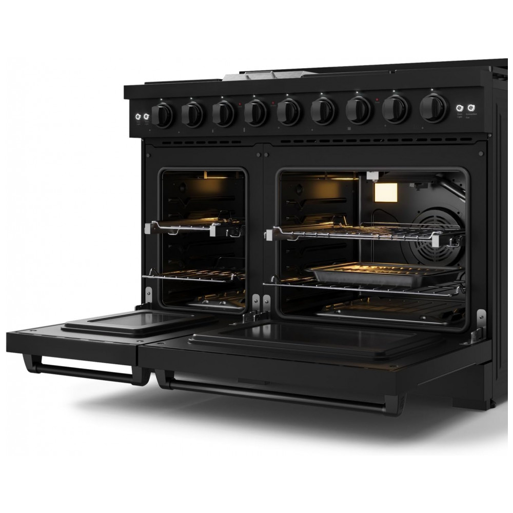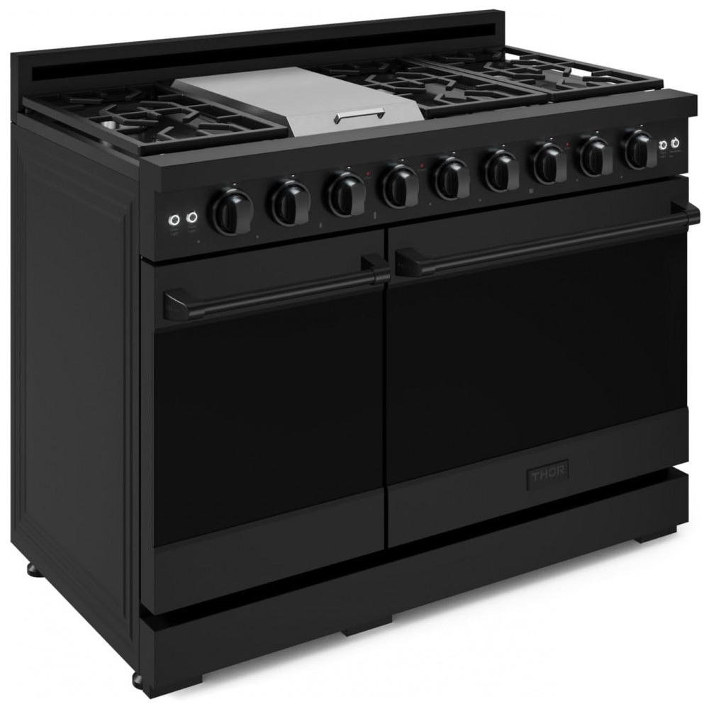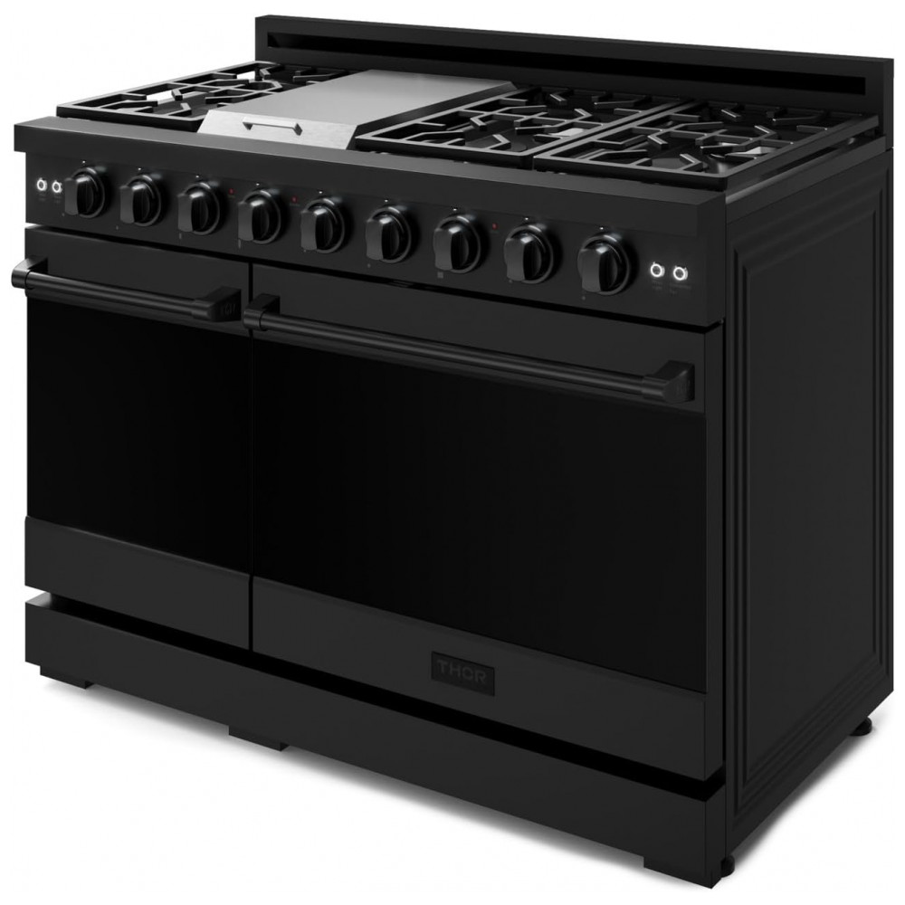 Fogão a gás profissional 122 cm Gordon Ramsay THOR Kitchen preto 7 queimadores chapa 15.000 BTU 2 fornos com convecção 198 L e 62 L 110V
