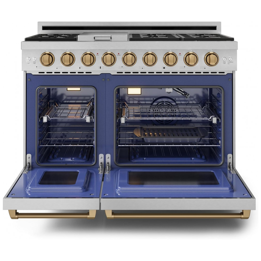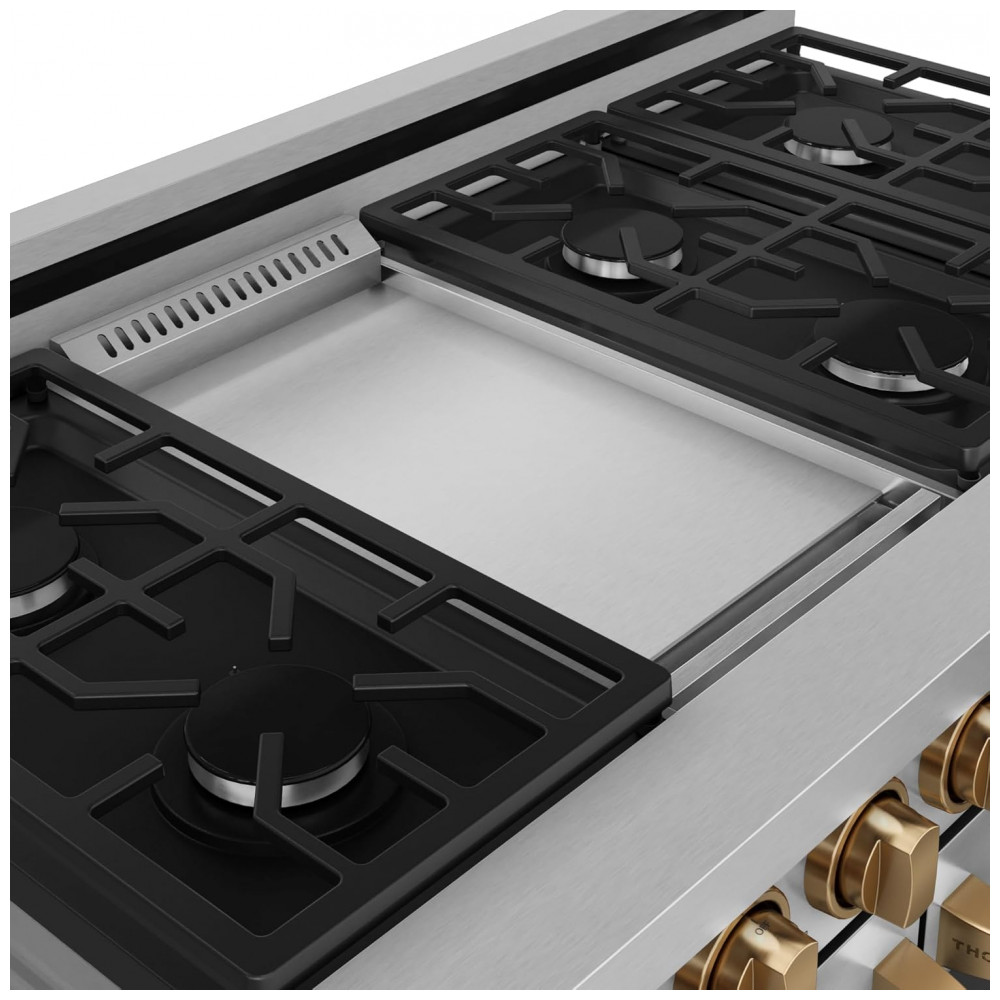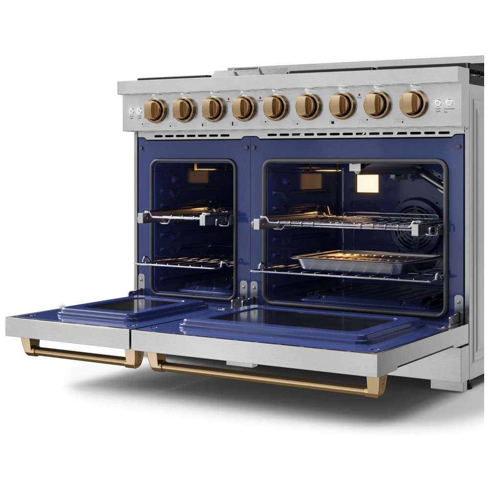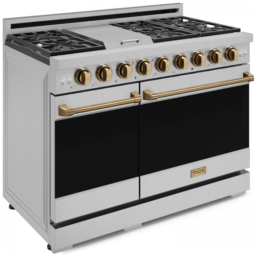 Fogão a gás profissional 122cm Thor Kitchen Gordon Ramsay inox escovado/bronze dupla fornalha convecção chapa 198L 110V
