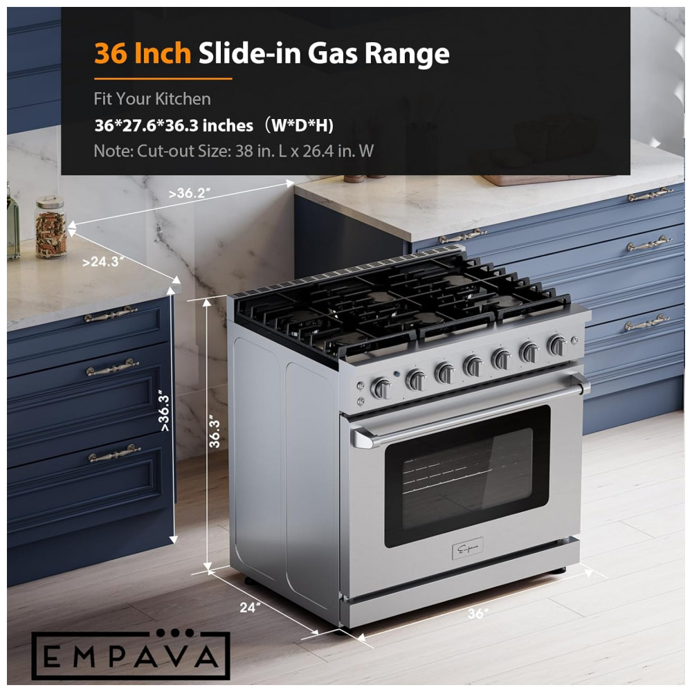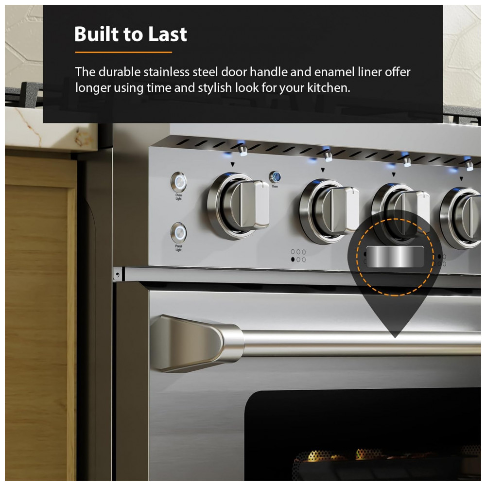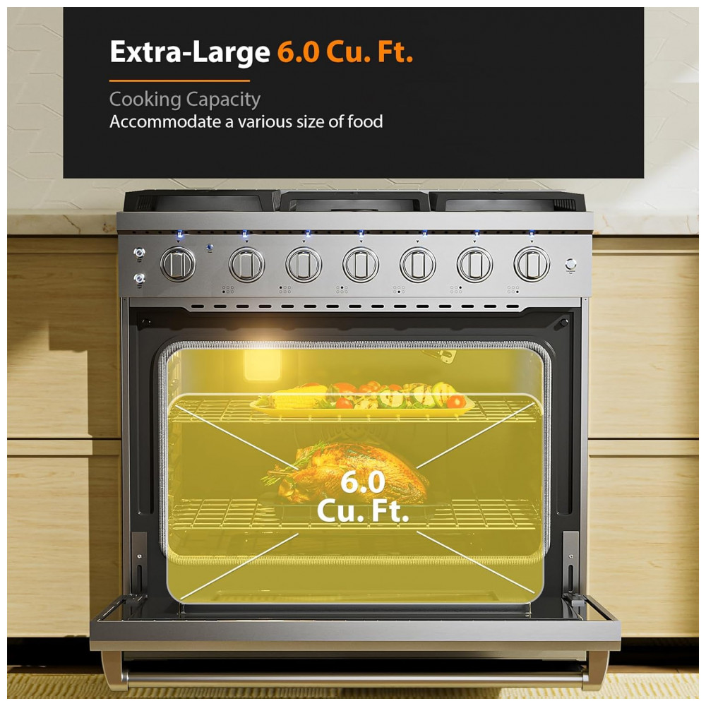Modelo: 36″ Professional Gas Range with 6 High-Output Sealed Burners, Convection Oven & Infrared Broiler