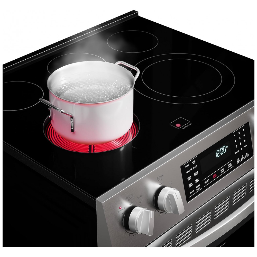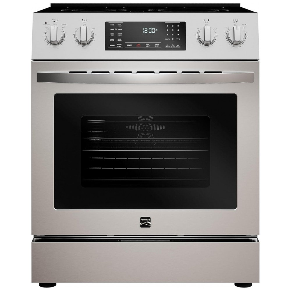 Fogão Kenmore Elétrico com Controle Frontal e 5 Elementos de Cooktop com 7 Opções de Potência de Cozimento Convecção Real Vapor e Autolimpeza