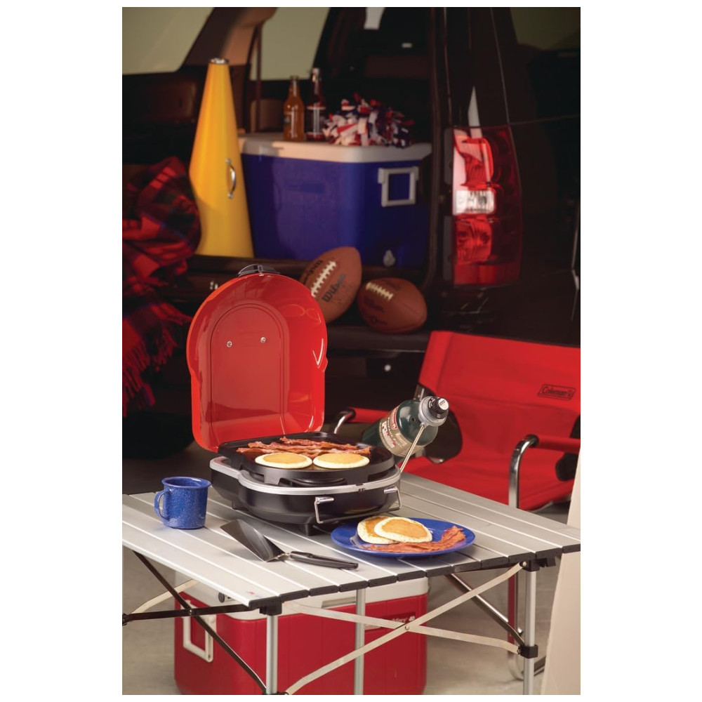 Apresentando um design dobrável com uma alça embutida, o Coleman Fold N Go Propane Grill facilita o churrasco em qualquer lugar. Dobrável menor que uma maleta, esta churrasqueira portátil e compacta oferece 6.000 BTUs de potência de cozimento com um queimador de ferradura ajustável. A ignição InstaStart permite acender facilmente a grelha com o apertar de um botão, enquanto a tecnologia PerfectFlow ajuda a garantir uma saída de calor constante em qualquer clima. Com seu cooktop de 105 polegadas quadradas, esta churrasqueira ao ar livre oferece uma superfície de cozimento espaçosa que é ideal para grelhar para todo o acampamento. Além disso, a bandeja de gordura e a grelha removíveis podem ser lavadas na máquina de lavar louça. O Coleman Fold N Go Propane Grill dura até 3,5 horas na configuração alta com um cilindro de propano de 16,4 onças vendido separadamente. Nota Uma bolsa de transporte e uma chapa também estão disponíveis ambos vendidos separadamente