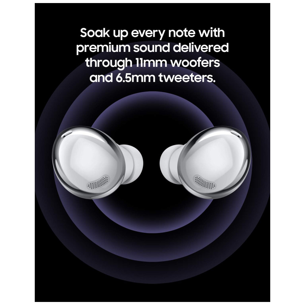 Bateria de longa duração Obtenha o suco de que você precisa para gelar por horas O estojo de carregamento sem fio está incluído e você também pode compartilhar a bateria do seu telefone colocando seus fones de ouvido na parte de trás do seu dispositivo Galaxy compatível para carregar em qualquer lugar