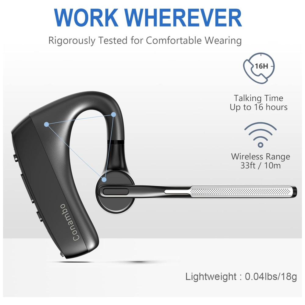 Conforto Superior O microfone flexível e o gancho de orelha giratório são projetados para caber em qualquer orelha, e 3 tamanhos de pontas auriculares de borracha de silicone híbrida incluídas, você pode encontrar o ajuste perfeito para seus ouvidos para maximizar a qualidade do som e minimizar o ruído externo.