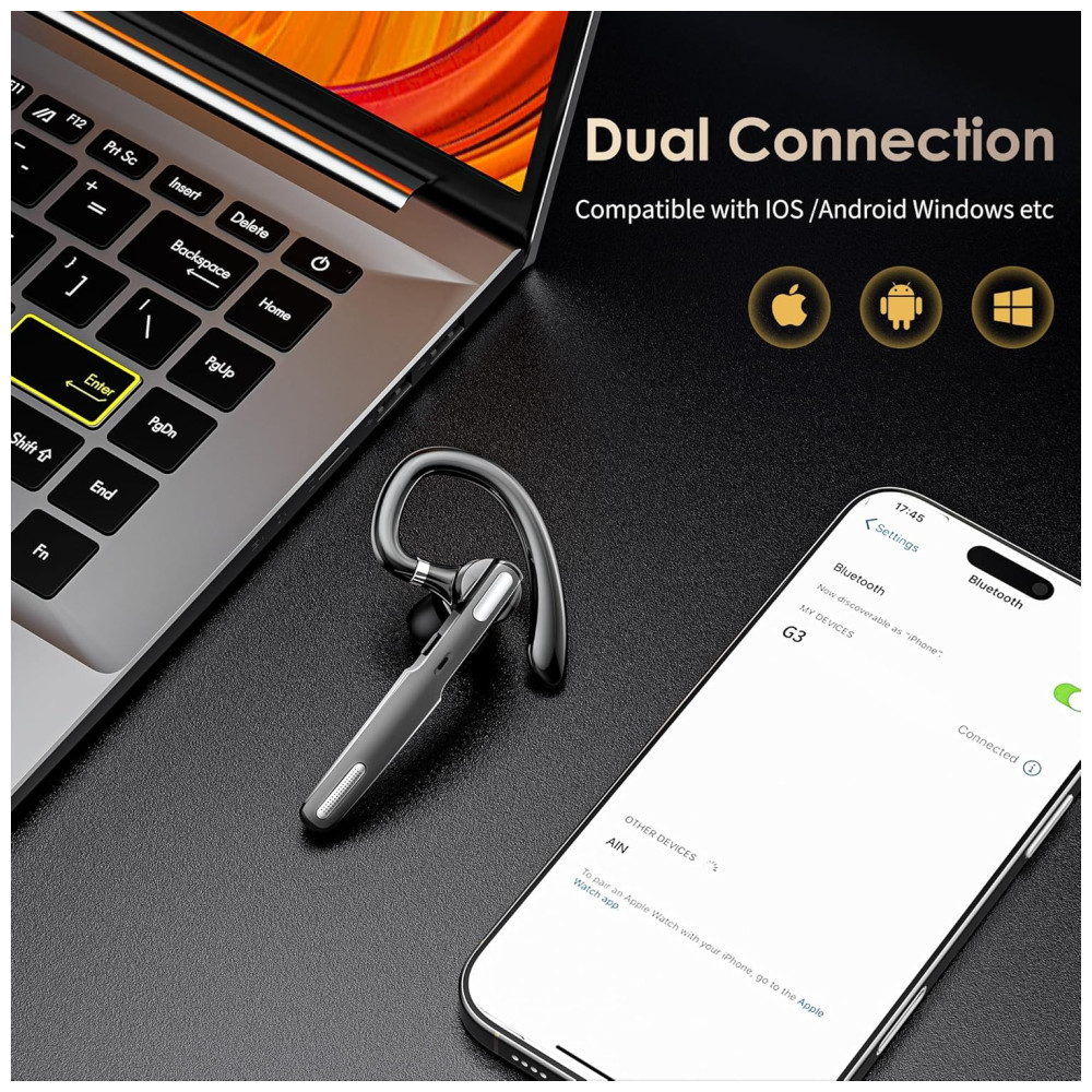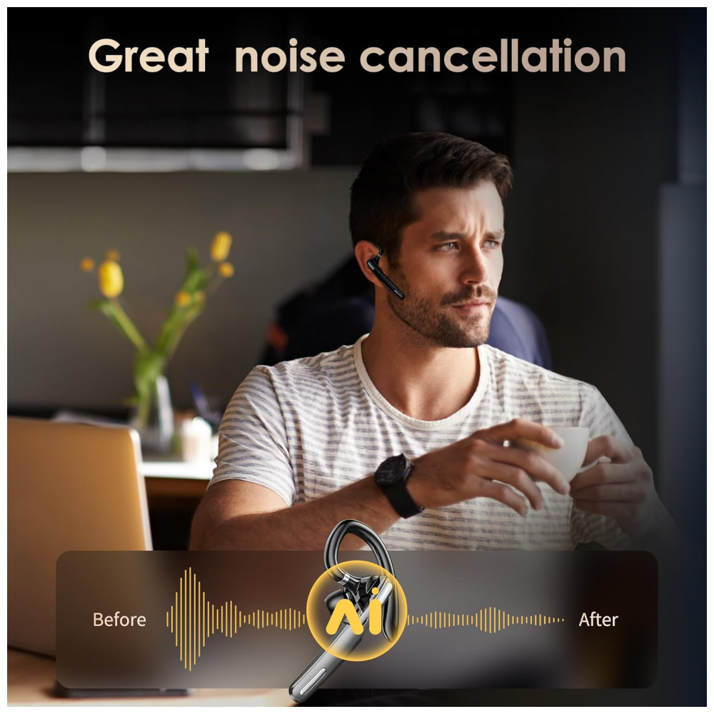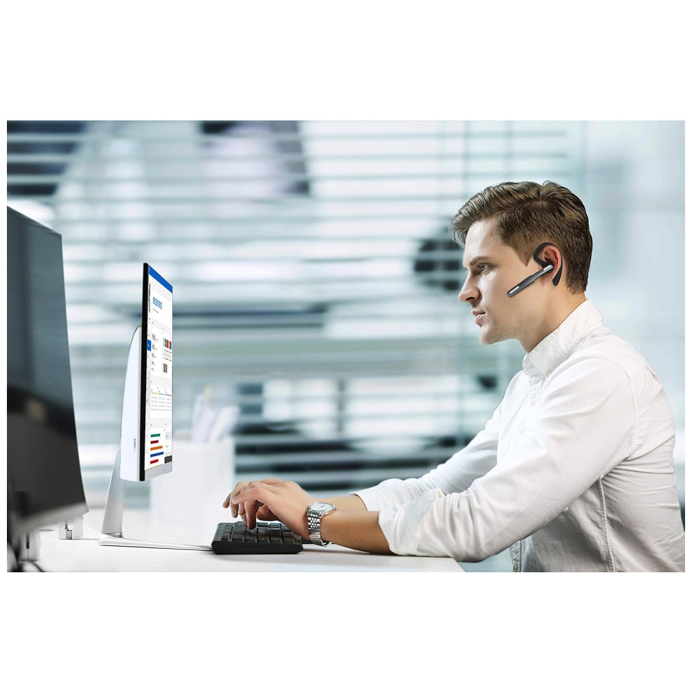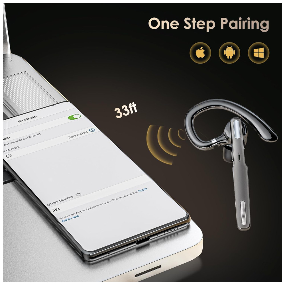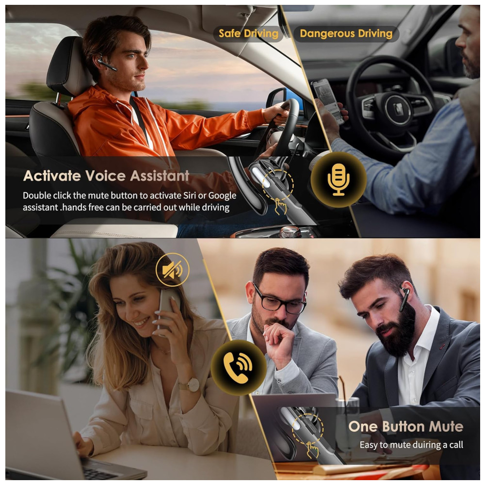 Viva voz para chamadas Este fone de ouvido Bluetooth com microfone Suporta Siri e assistentes de voz. Silenciar, ativar facilmente com o toque de um botão. A voz alerta o nível da bateria, status da conexão, status mudo, ativado e até anuncia o número de telefone do chamador, exceto o nome do chamador. Botões fáceis de alcançar permitem que você desfrute de mãos livres reais.