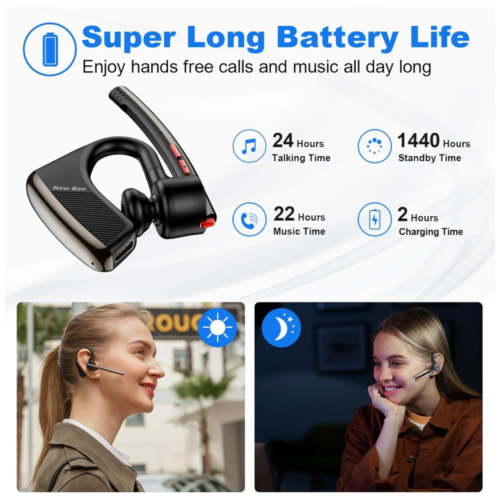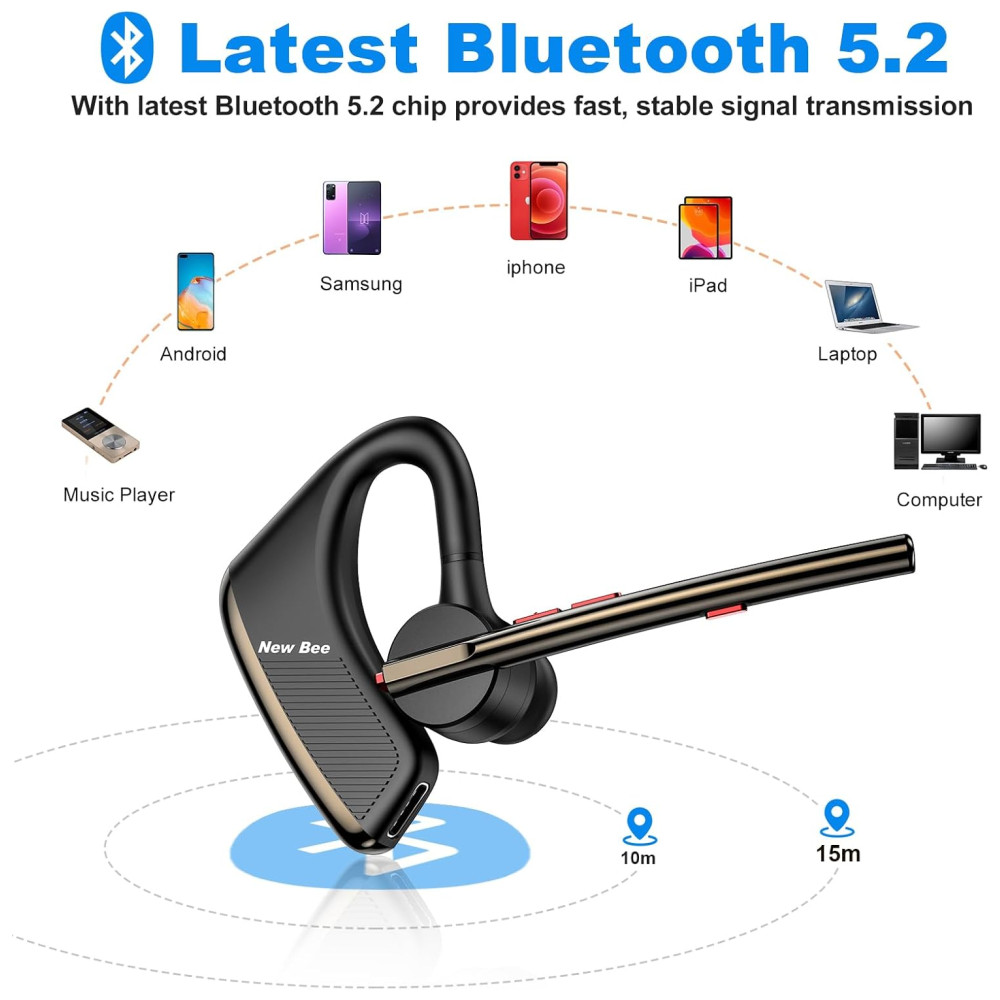 Fone de ouvido sem Fio Headset Bluetooth para Chamadas com Microfone NEW BEE Preto