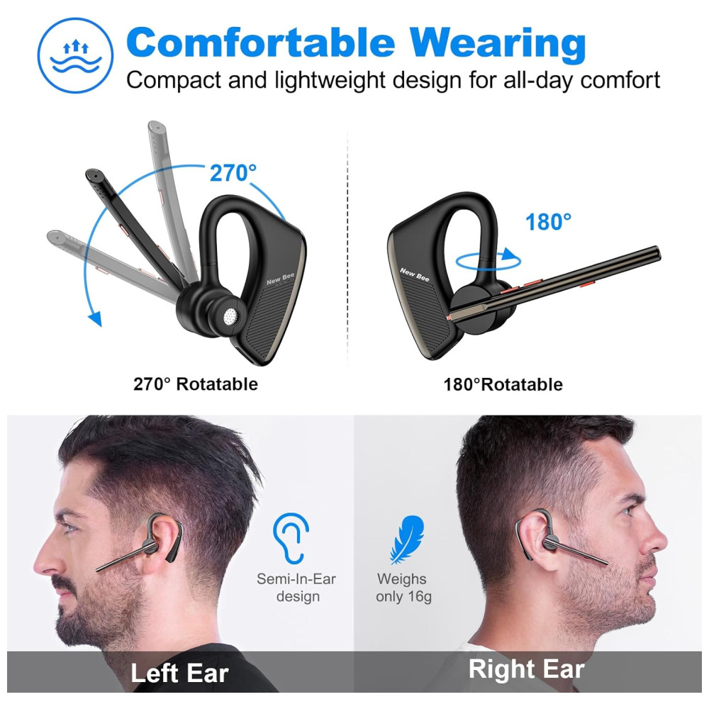 Vestindo Confortável O fone de ouvido sem fio de abelha foi projetado com peso leve de apenas 16g, não sobrecarregando seus ouvidos. Microfone flexível e braço giratório com gancho de orelha, incluindo 3 pontas de ouvido opcionais, garantem um uso perfeito em qualquer orelha