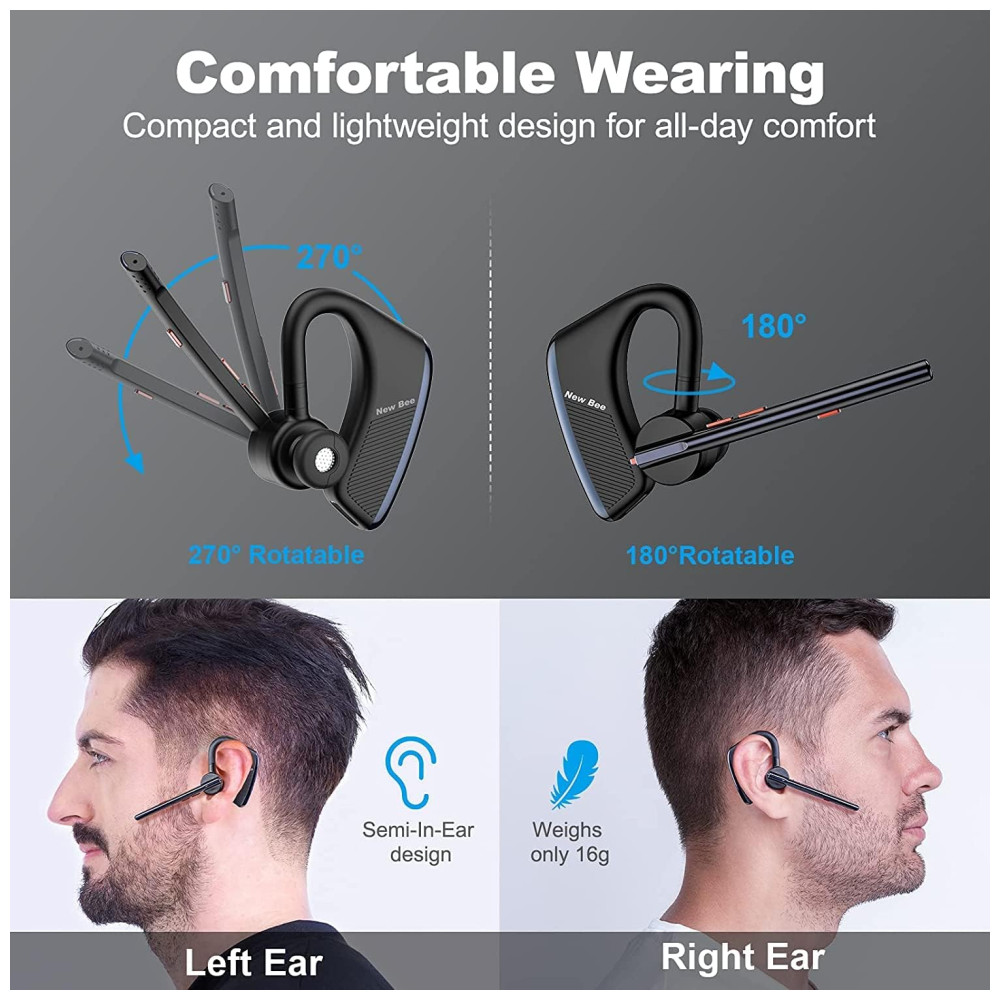 Vestindo Confortável O fone de ouvido sem fio de abelha foi projetado com peso leve de apenas 16g, não sobrecarregando seus ouvidos. Microfone flexível e braço giratório com gancho de orelha, incluindo 3 pontas de ouvido opcionais, garantem um uso perfeito em qualquer orelha