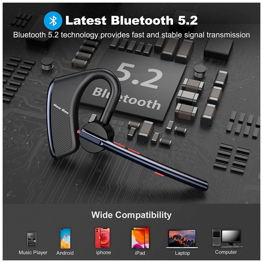 Fone de ouvido sem Fio Headset Bluetooth para Chamadas com Microfone NEW BEE Preto