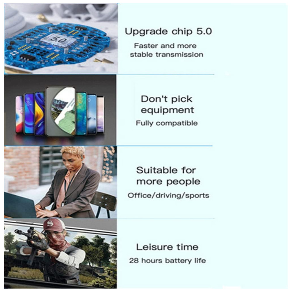 Emparelhamento fácil Depois de emparelhar com o telefone uma vez com sucesso, quando você abrir o fone de ouvido blutooth, o fone de ouvido sem fio se conectará automaticamente ao seu telefone no futuro.