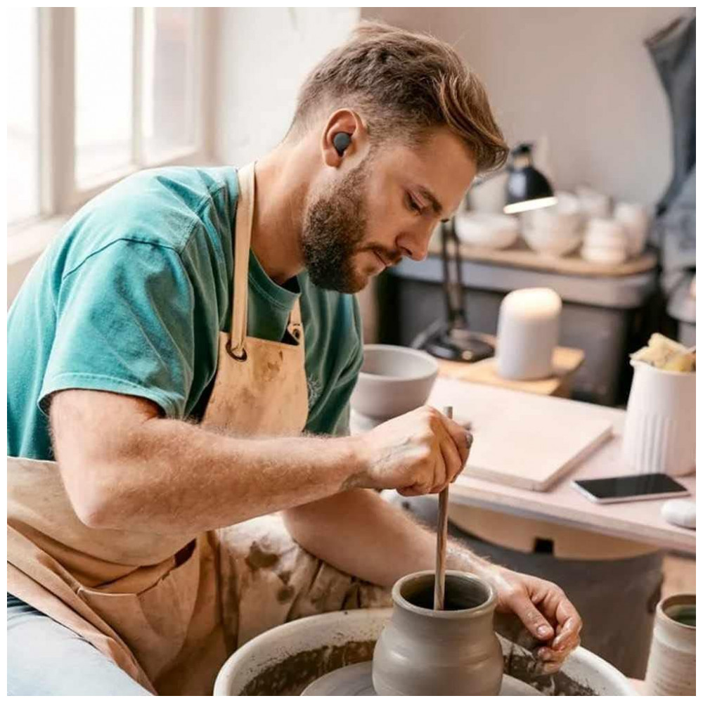 Com um design rente ao ouvido, três tamanhos de pontas auriculares e um arco estabilizador, os fones de ouvido sem fio permanecem no lugar e criam uma vedação suave para um som incrível.