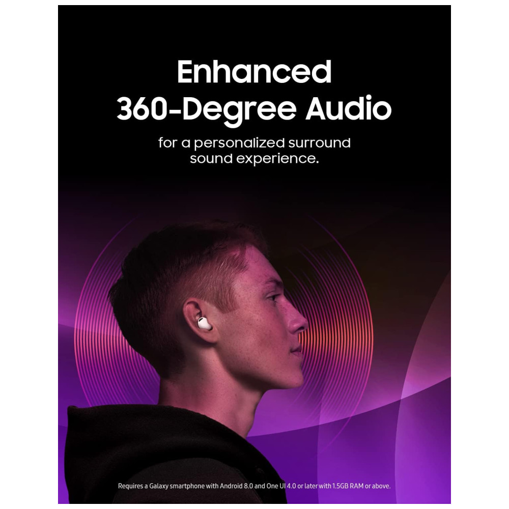 ÁUDIO DE 360 GRAUS APRIMORADO Amplifique o que você gosta Minimize o que você não faz Áudio aprimorado de 360 graus traz os tons que você ama de todos os ângulos para uma experiência de som surround personalizada toda vez que você os coloca