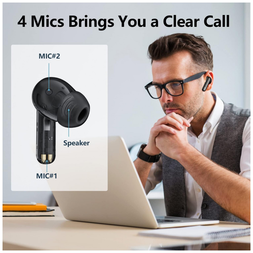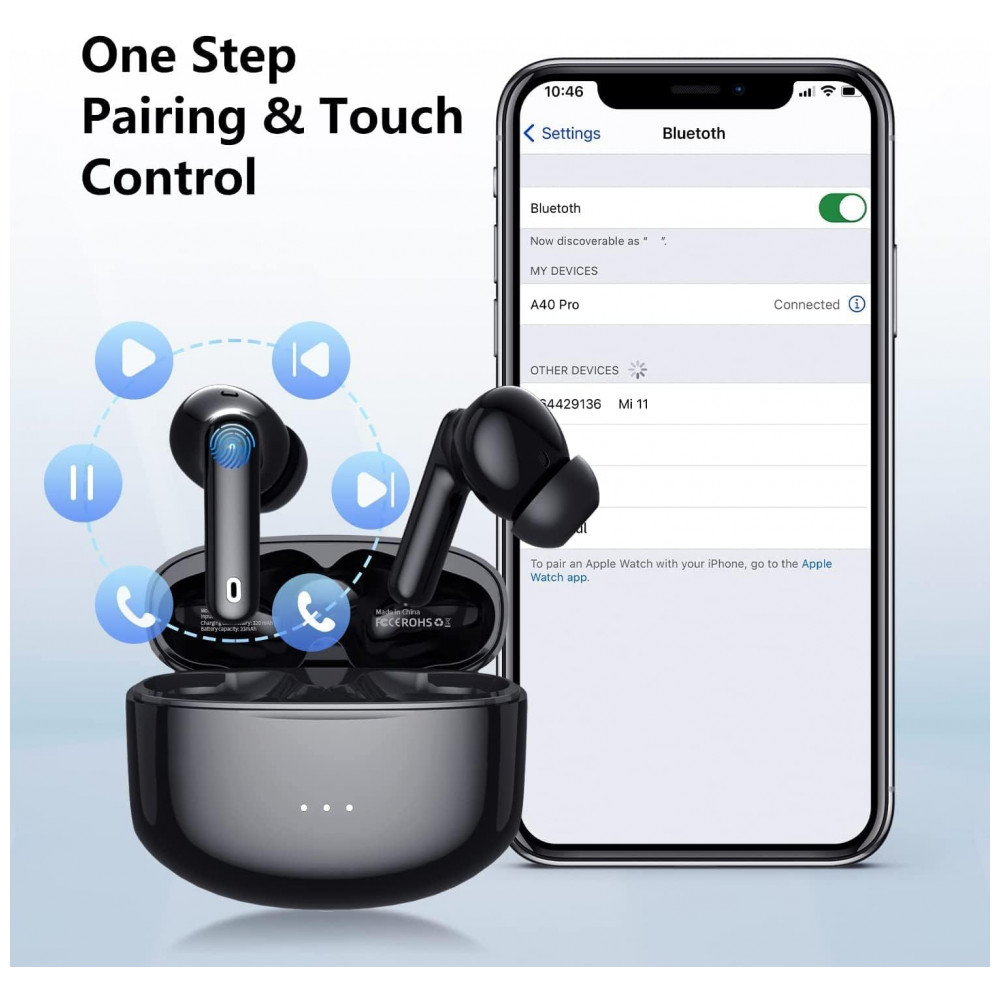 Emparelhamento em uma etapa Fones de ouvido sem fio A40 Pro Interruptor interno do hall, os fones de ouvido sem fio bluetooth ligam automaticamente e se conectam ao seu último dispositivo assim que você abre o estojo de carregamento após a primeira conexão, o que é mais rápido e conveniente.