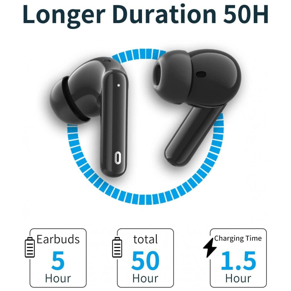Caixa de carregamento lindamente compacta e 50 horas de reprodução A caixa de carregamento compacta é fácil de levar com você quando você está fora de casa e oferece bateria de longa duração