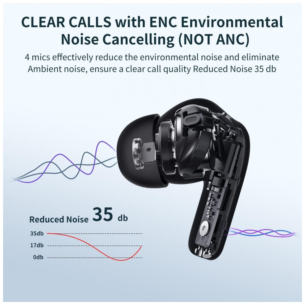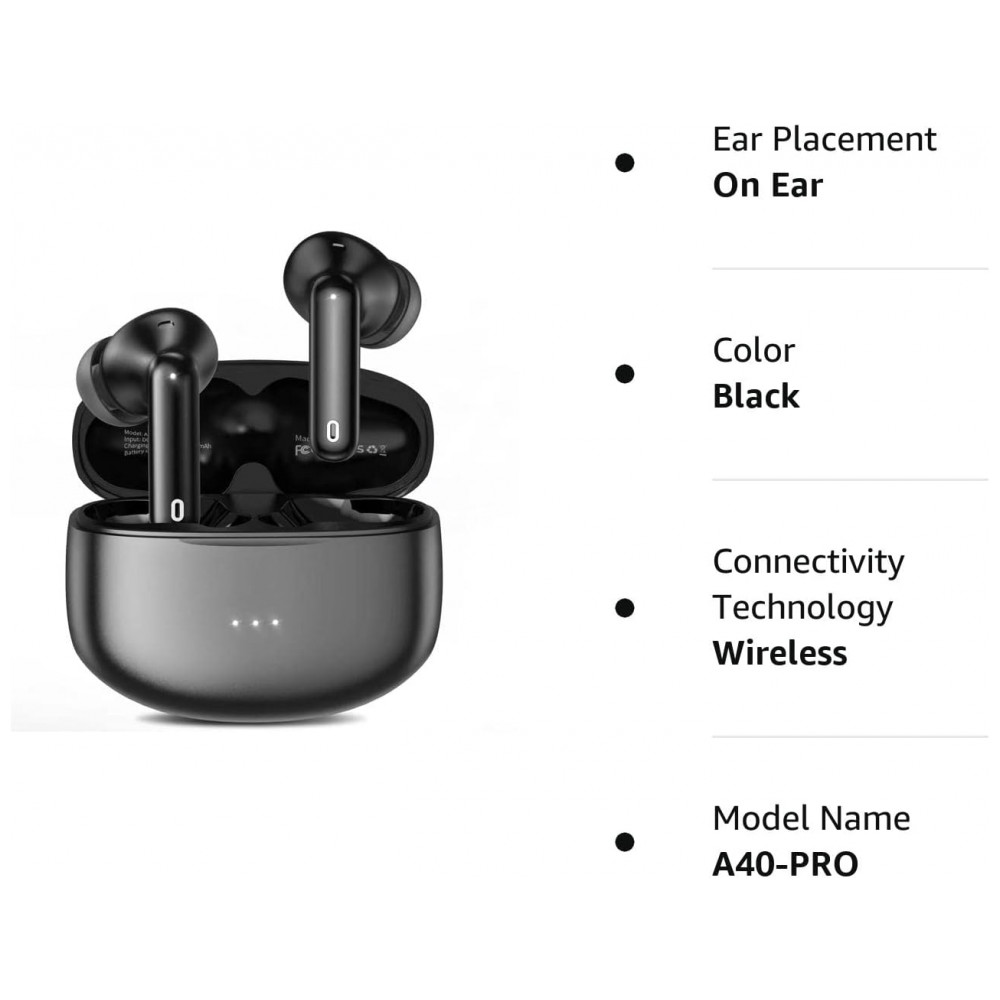 Crystal and Clear Calls and Immersive Stereo Os fones de ouvido A40 Pro Bluetooth possuem unidades de alto falantes fortes de e suporte de estrutura acústica no ouvido, que produz graves fortes, som médio claro e agudos brilhantes. O design acústico exclusivo da sala de cavidades, pressão de ar interna e externa equilibrada, evita a perda de som, garante som estável e poder penetrante, mesmo em um ambiente ruidoso pode fornecer detecção de voz clara. Você pode desfrutar do seu espaço pessoal, seja dentro de casa, ao ar livre, trabalhando ou se exercitando.