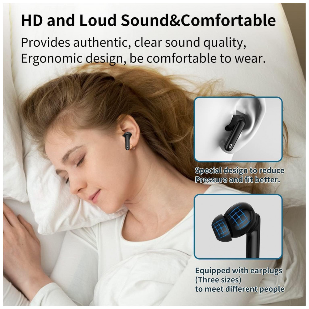 Fit Design Smart Touch Control O design meio intra auricular com um ângulo de 108 graus, o que torna os fones de ouvido confortáveis e estáveis de usar. O controle sensível ao toque permite fácil navegação pelas configurações e o design ergonômico e simplificado oferece conforto, para que você possa ouvir música sem ser perturbado durante o exercício, trabalho, corrida, caminhada, viagem.
