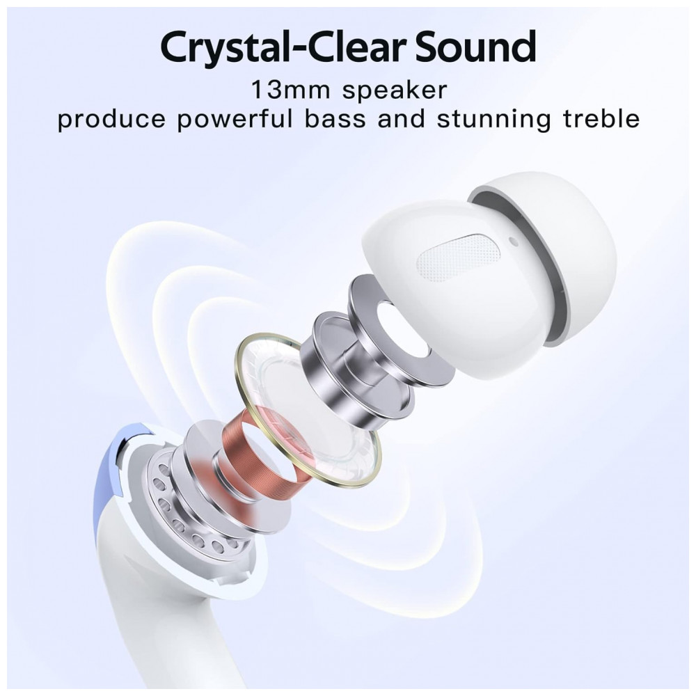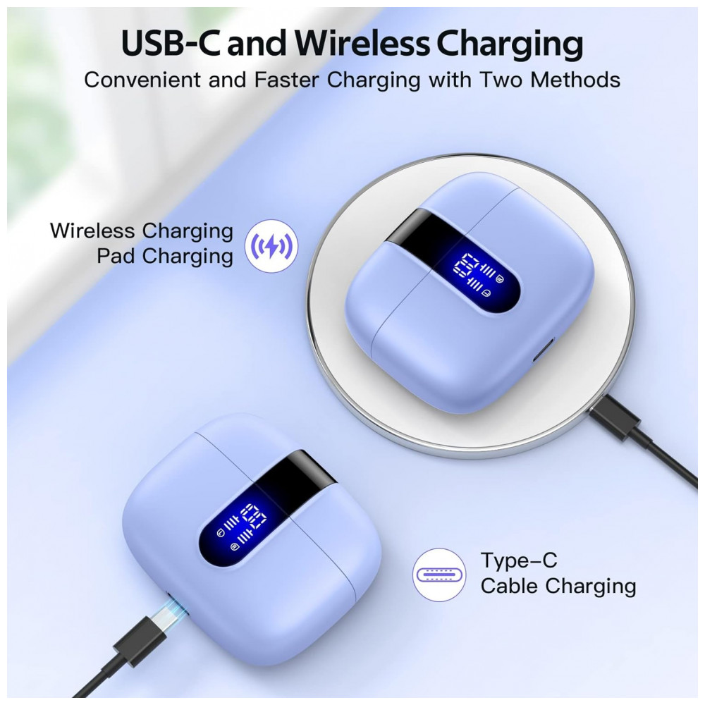Carregamento sem fio e IPX5 à prova dágua o estojo de carregamento desses fones de ouvido bluetooth suporta carregamento sem fio e carregamento por cabo USB C. Esses fones de ouvido sem fio são classificados como IPX5 à prova dágua, o nanorrevestimento na superfície dos fones de ouvido pode impedir a penetração de água e suor, o que pode ser como fones de ouvido sem fio esportivos. Você pode ouvir a música enquanto corre, trabalha, lê, dorme, encontra se, etc.