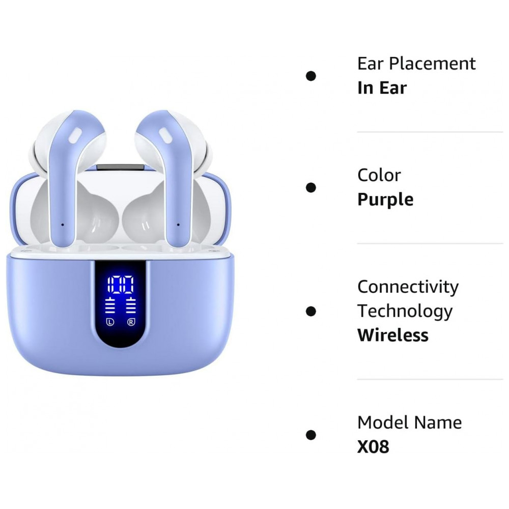 Fones de Ouvido Bluetooth com Estojo de Carregamento e Intra Auriculares IPX5 à Prova Dágua TAGRY Roxo