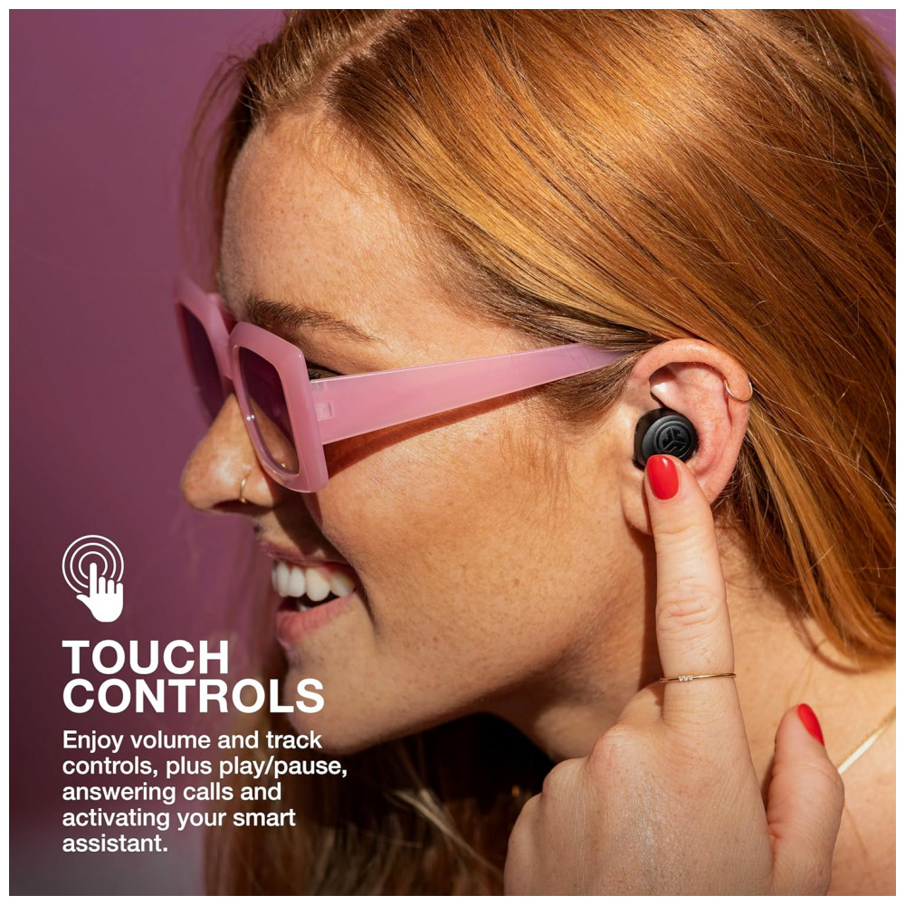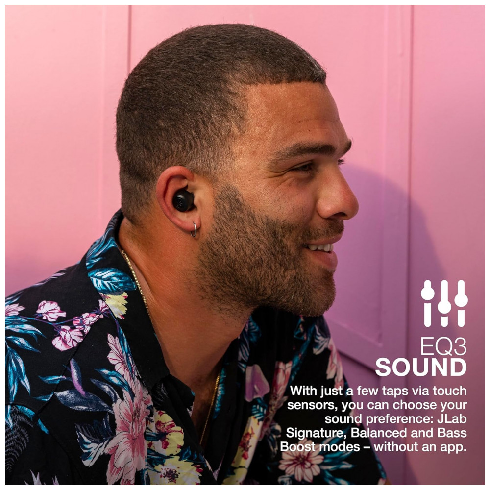 Controles de som , toque EQ3 com apenas alguns toques por meio de sensores de toque, você pode escolher sua preferência de som modos JLab Signature, Balanced e Bass Boost sem um aplicativo. Aproveite os controles de volume e faixa, além de reproduzir, pausar, atender chamadas e ativar seu assistente inteligente com as funções de controle de toque.