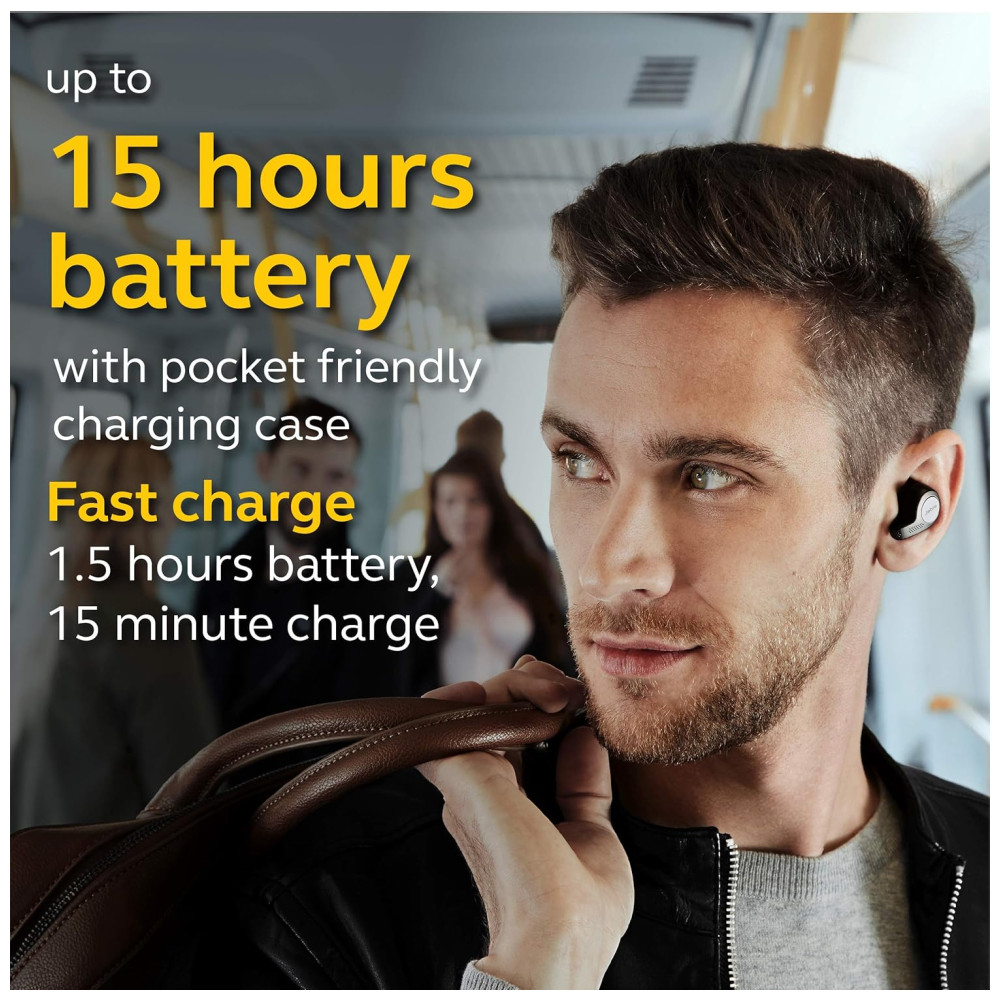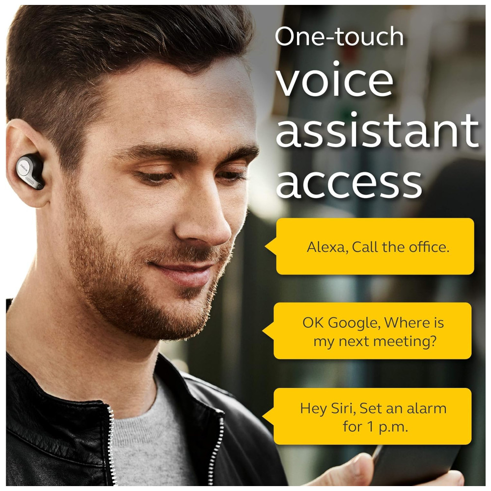 Onde quer que seu dia o leve, seja qual for sua atividade favorita, não atrapalhará o esporte, a música e as chamadas. Os Jabra Elite Active 65 t são fones de ouvido com encaixe que fornecem estabilidade confiável no ouvido, perfeita para um estilo de vida ativo. Eles têm classificação IP56. Os controles da ponta dos dedos permitem fácil acesso às funções principais, para que você não precise interromper um treino para aumentar o volume ou se preocupar com a interferência dos fios. Independentemente de você estar usando esses fones de ouvido como fones de ouvido para iPhone, Samsung ou mais, você pode ouvir sua música da maneira que deseja, personalizando seu som no aplicativo Jabra Sound, escolhendo como o Sound entrega seu som e como ele se parece. O Jabra Elite Active 65 t são fones de ouvido sem fio verdadeiros de terceira geração e a Jabra possui um histórico comprovado de excelente conectividade sem fio verdadeira. Experimente a estabilidade que permite atender e ouvir música sem se preocupar com interrupções de áudio. E com o Bluetooth 5 nesses fones de ouvido sem fio, você pode conectá los perfeitamente ao seu smartphone, tornando os ideais para estudantes e profissionais usarem enquanto aprendem e trabalham em casa. Quaisquer que sejam as suas necessidades auditivas, você pode usar esses fones de ouvido o dia todo. Com até 5 horas de bateria com uma única carga e até 15 horas no total com o estojo de carregamento incluso para bolso, suas necessidades de audição são atendidas desde o início do dia até o fim. Além disso, é confortável. Estão incluídos 3 conjuntos de EarGels em tamanhos diferentes, para que você possa escolher o tamanho certo para garantir excelente qualidade de som em todas as circunstâncias. Sensibilidade do microfone 38 dBV , Pa