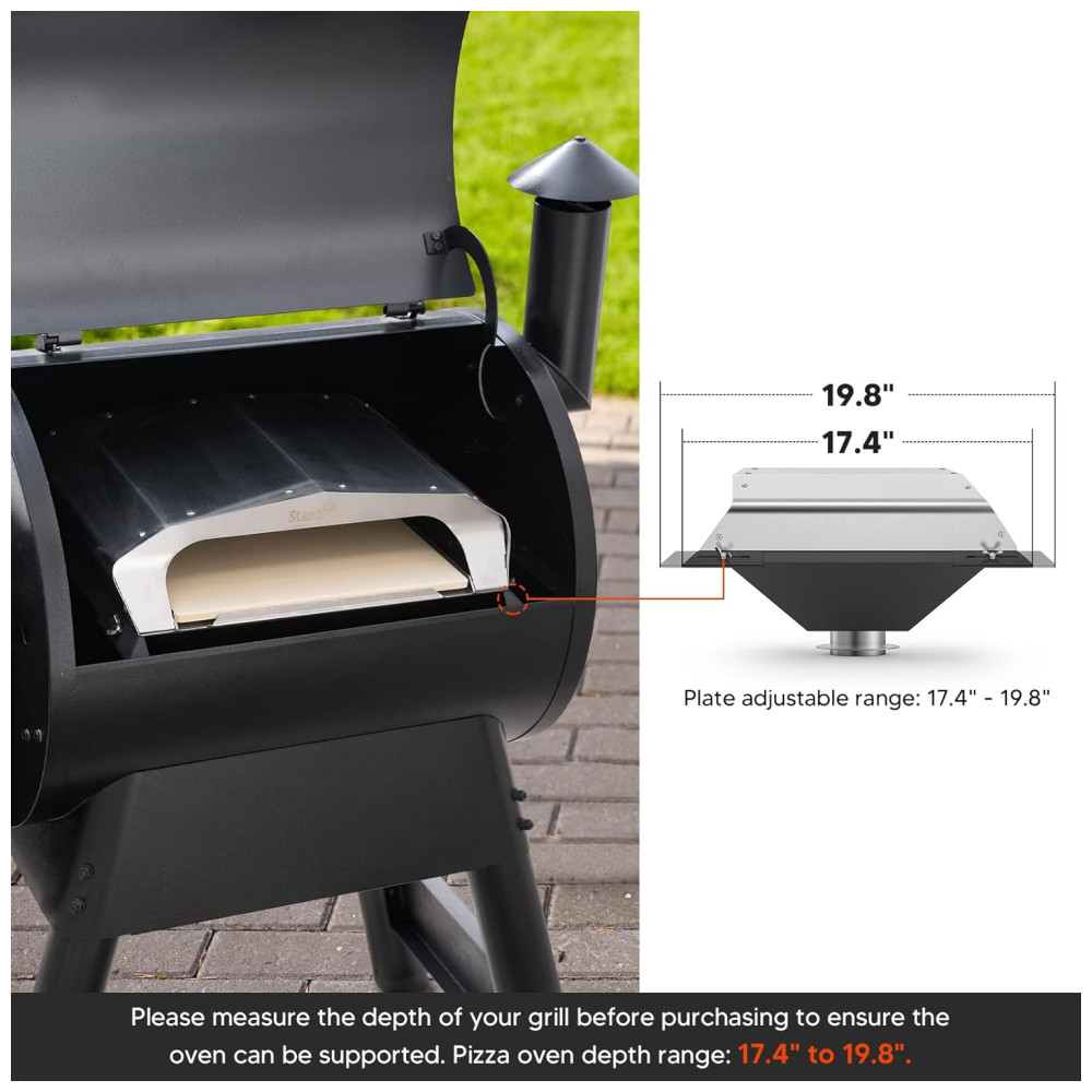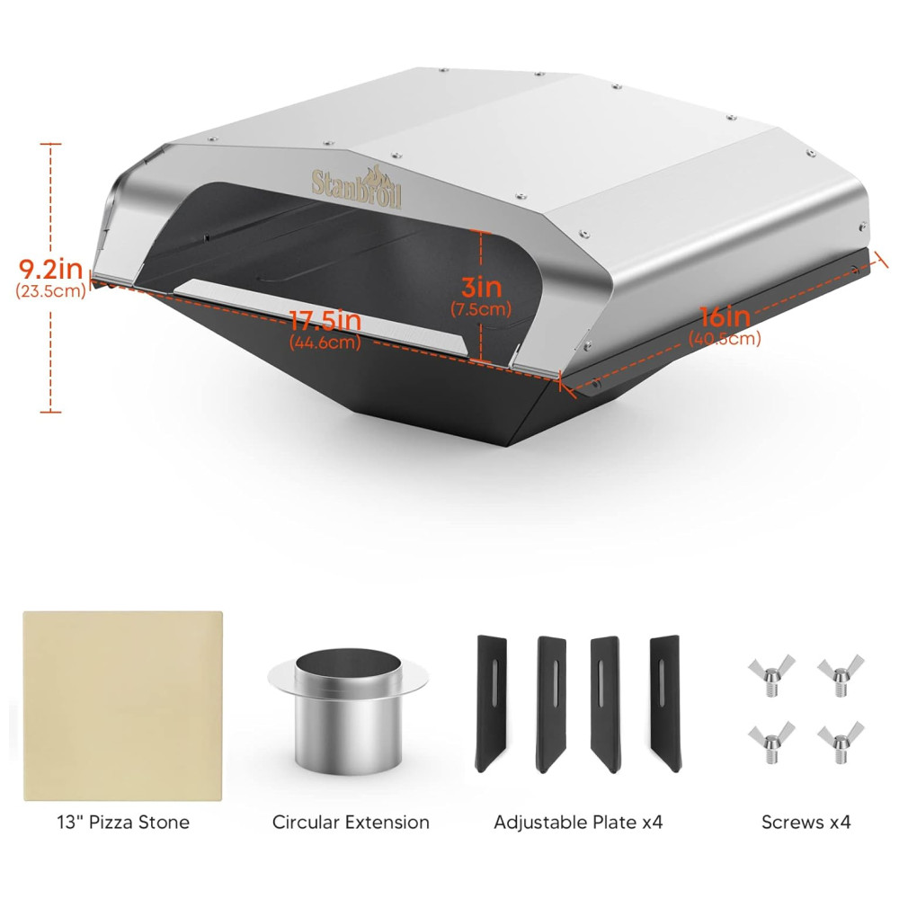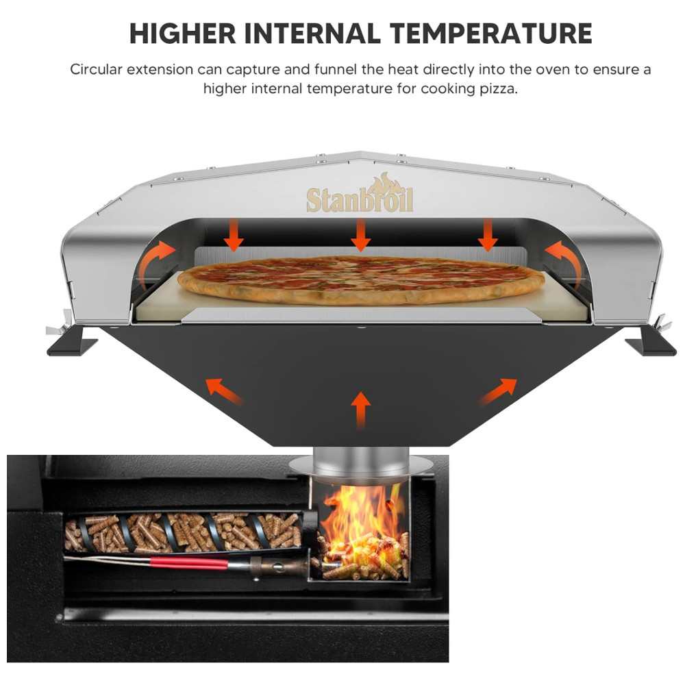 O Forno para Pizza Stanbroil é o acessório perfeito para os amantes de pizza que desejam elevar sua experiência culinária. Inclui uma pedra para pizza de 33cm, oferecendo a autêntica qualidade de um forno a lenha. Sua extensão circular captura o calor e aumenta significativamente a temperatura interna, garantindo pizzas crocantes e deliciosas. Compatível com mais de 60 modelos de churrasqueiras a pellets, como Traeger, Pit Boss, Camp Chef, Green Mountain Grills, Z Grills e outros. A placa de suporte ajustável se adapta a diferentes profundidades de grills. Transforme seu grill em um forno de pizza gourmet e surpreenda seus convidados!